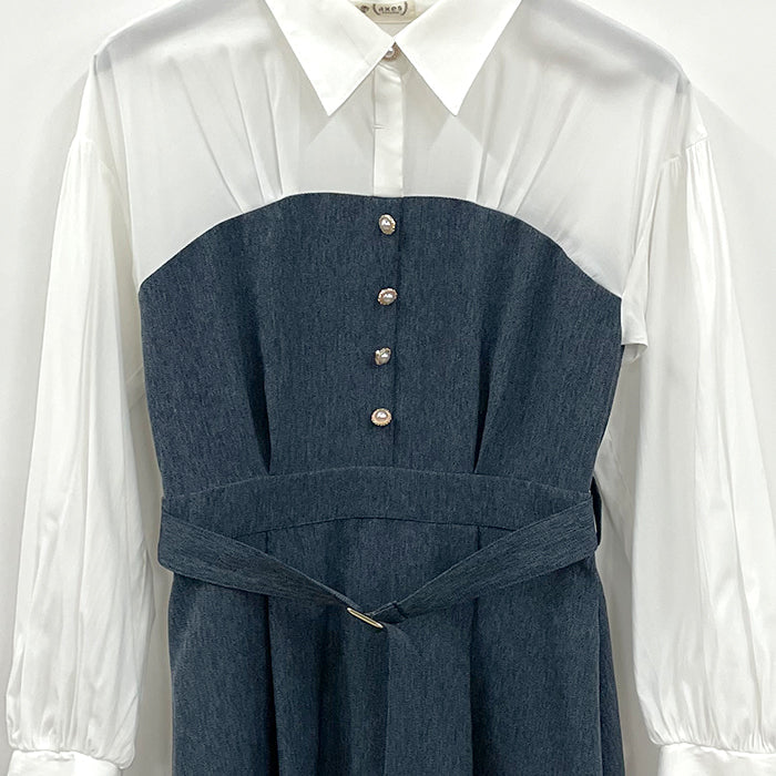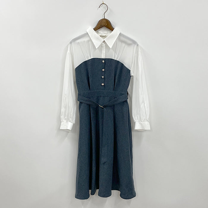 襟付ビスチェ切替ワンピース