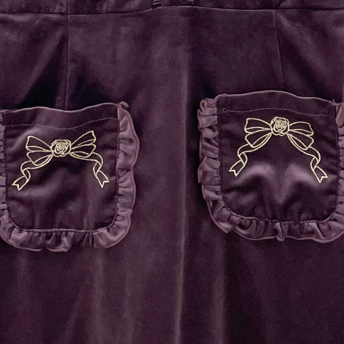 クラシックな雰囲気のアイテムにポケットデザインとリボンの刺繡でキュートな遊び心をプラス♪