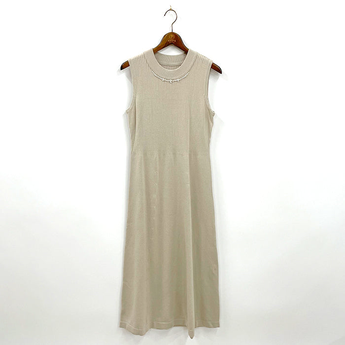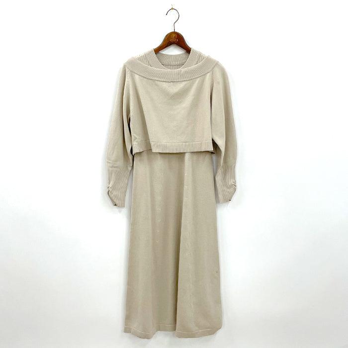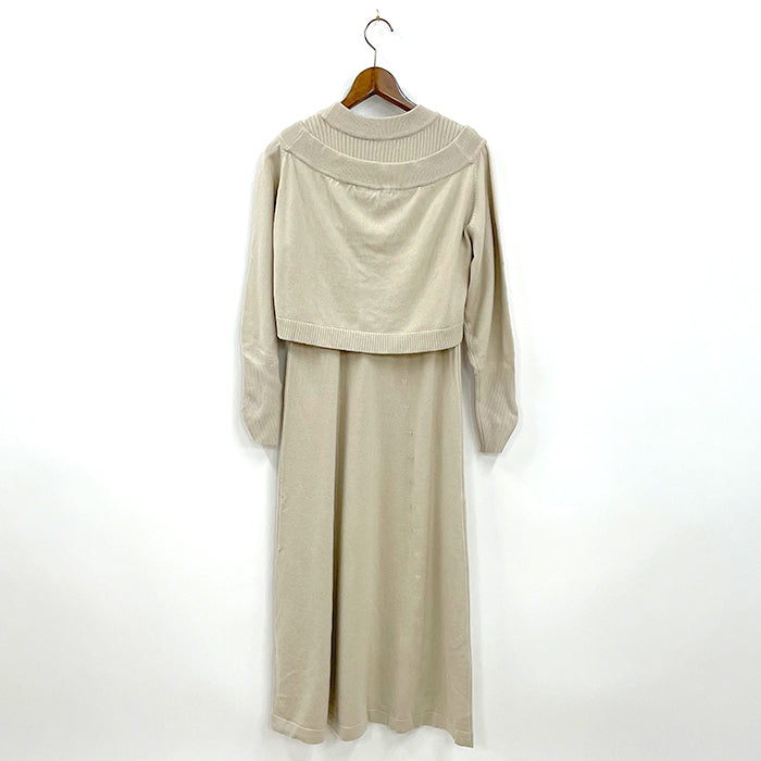 ノースリーブニットワンピースとオフショルニットがセットになったアイテム。女性らしいカーヴィーなシルエットです。