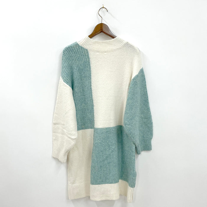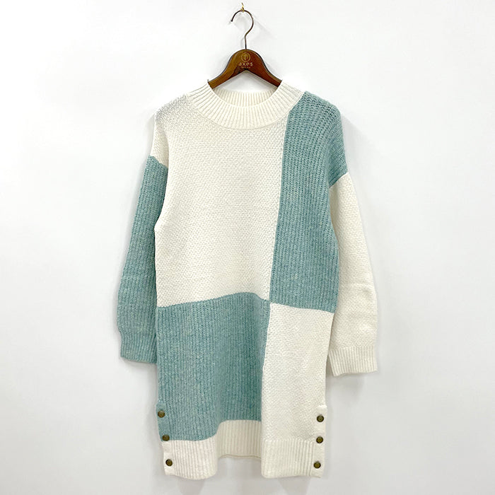 バイカラーで切り替わったパッチワーク風デザインがポイントのニットチュニックです。