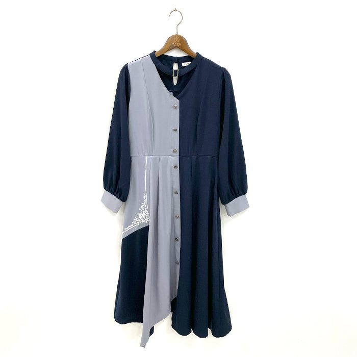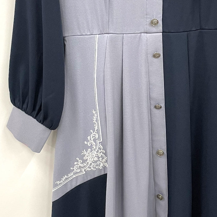 複雑な切り替えと配色使いがポイント、クラシカルな刺繍を施しシックな印象に仕上げました。