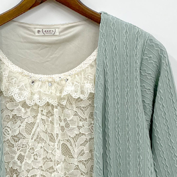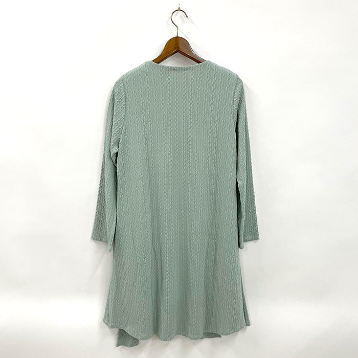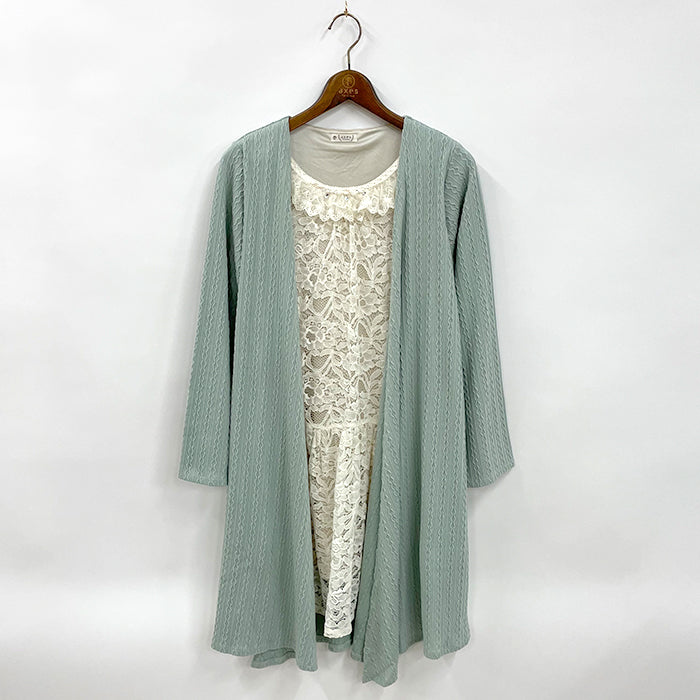 カーディガンは着心地の良いカット生地で、ゆったりとしたAラインがシルエットをカバーします。