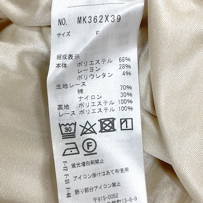 レースのチュニックは裾に切替フリルが入り、さりげなくフェミニンさをアップ。