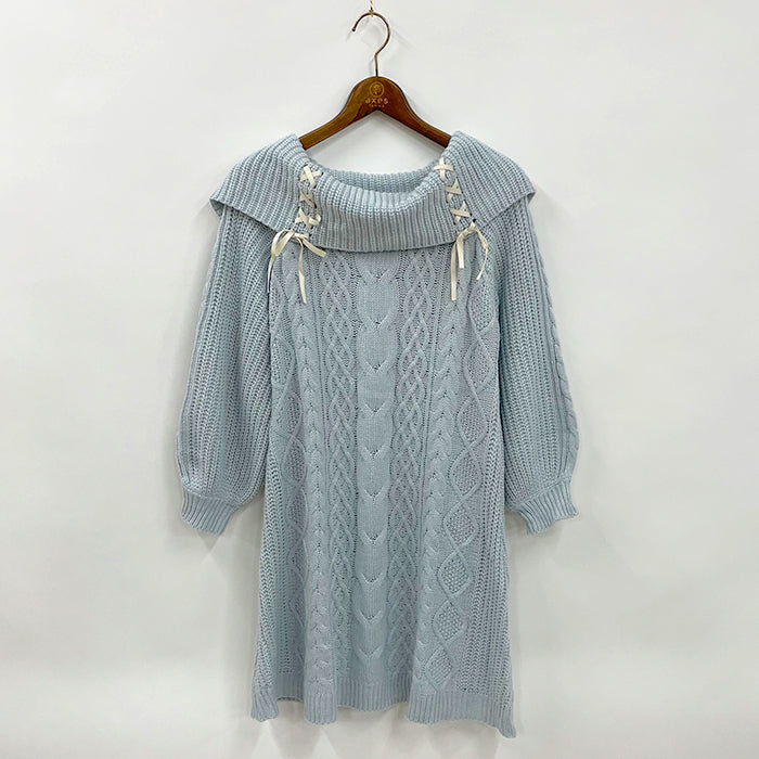 W編み上げニットチュニック