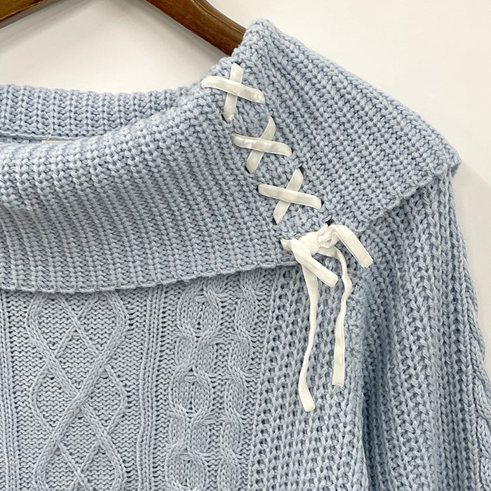 毎年大人気のWレースアップがフェミニンな印象のオフタートルデザインのニットチュニックです。