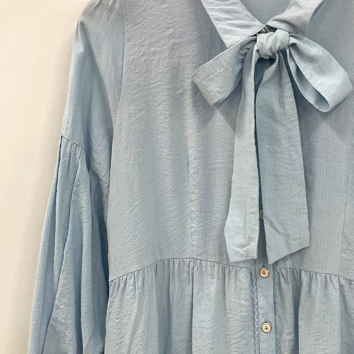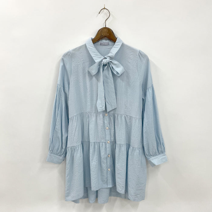 ティアードデザインと大き目のリボンでガーリーなテイストをプラスしたシャツチュニックです。