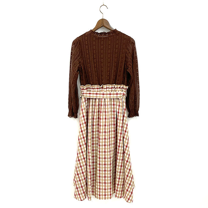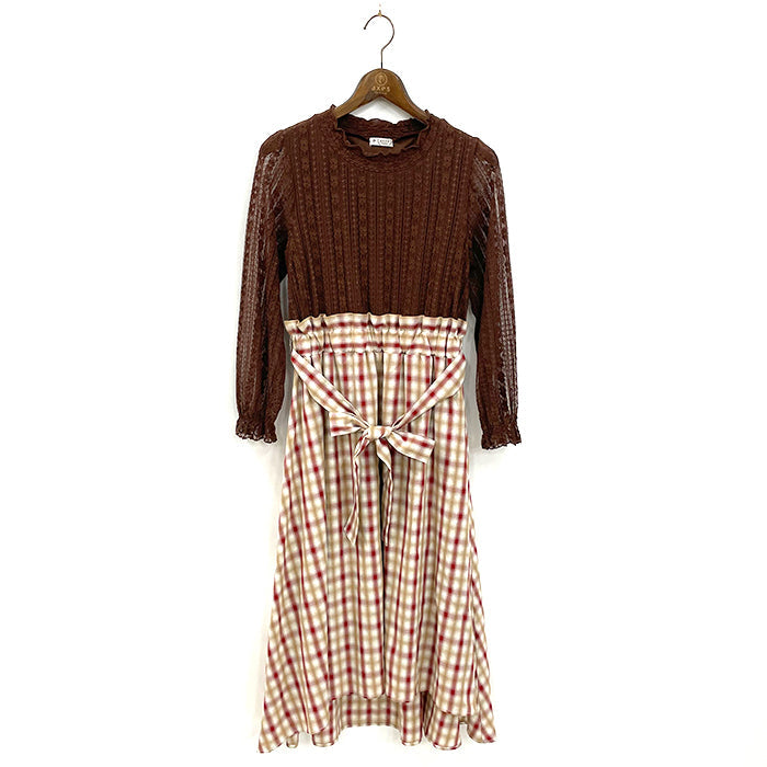 1枚でスタイリングが決まる、チェックスカート×レーストップスのドッキングワンピースです。スカートの裾はフィッシュテールになっているため足長効果も◎。細めラインのチェックで秋を先取りできるアイテムです。ウエストは一周ぐるりとゴム仕様なので動きやすさ、着易さも抜群です。