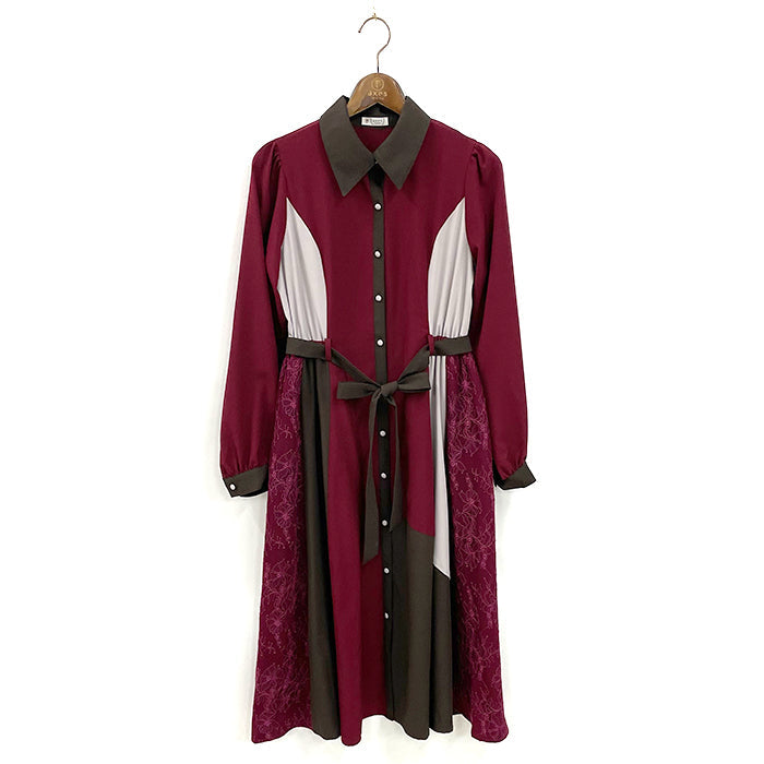 レース切替配色ワンピース
