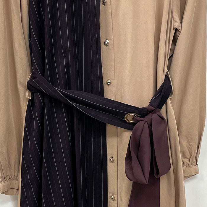 大人気のバイカラーワンピが長袖になりカラー展開も秋らしくなりました。ベルトがセットになっているので、1枚でトレンド感のあるスタイリングがばっちり決まるアイテムです。
