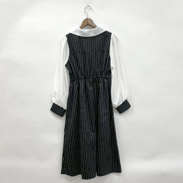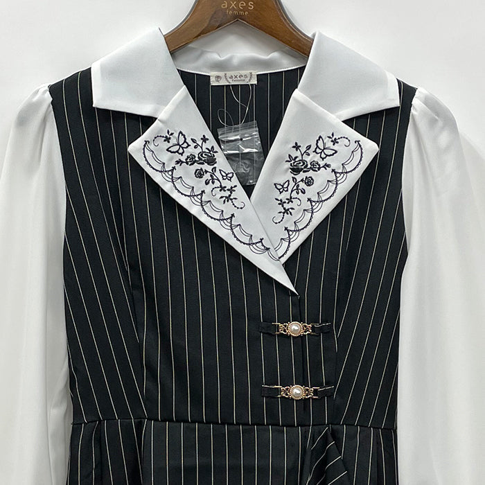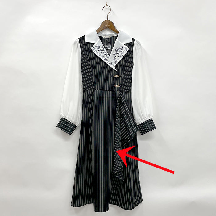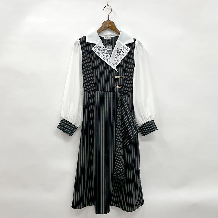オリジナルの蝶々×オーナメント刺繍が華やかな、ビッグ襟のドッキングワンピースです。