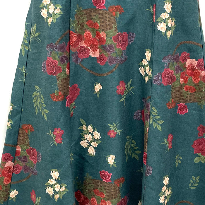 華やかなバスケットブーケ柄が広がる、クラシカルな雰囲気のジャンスカです。