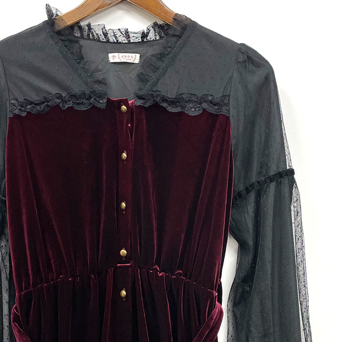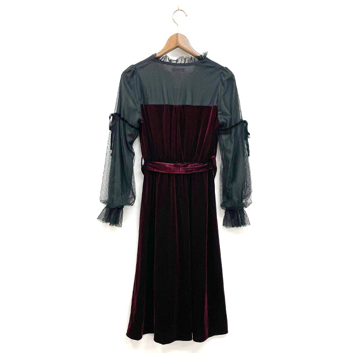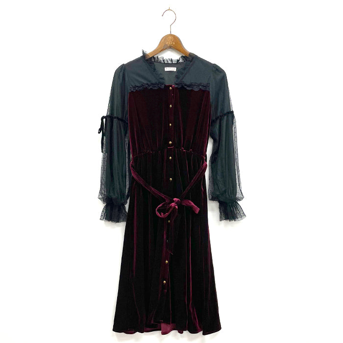 高級感のあるベロア生地を使用した、クラシカルなデザインのワンピースです。