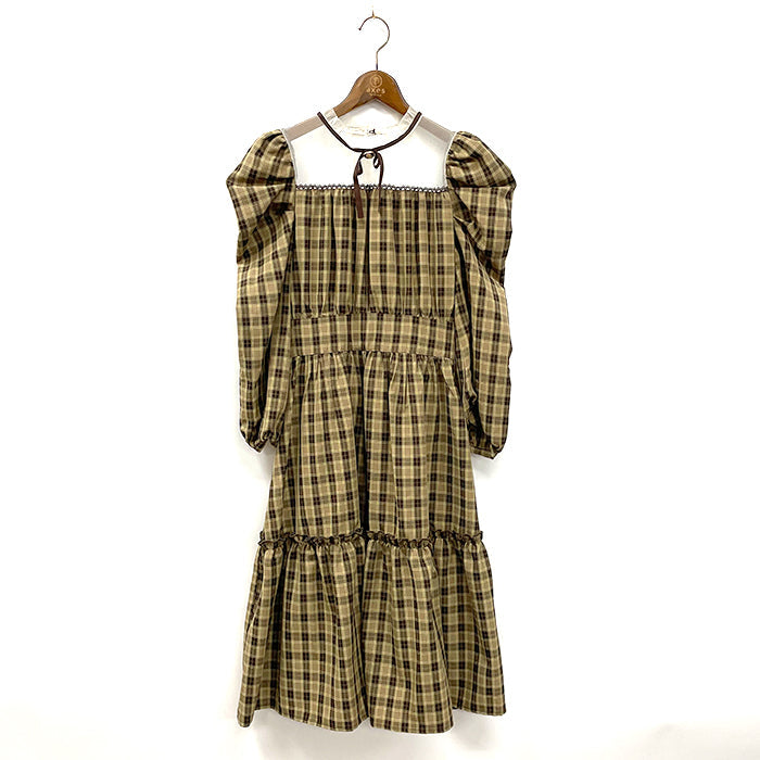 チェック生地を使用したクラシカルガーリーなロングワンピース。