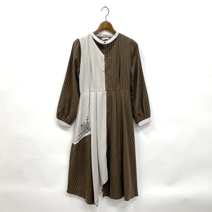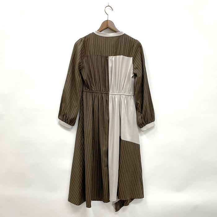 無地×ストライプのバイカラーが目を惹くワンピースです。