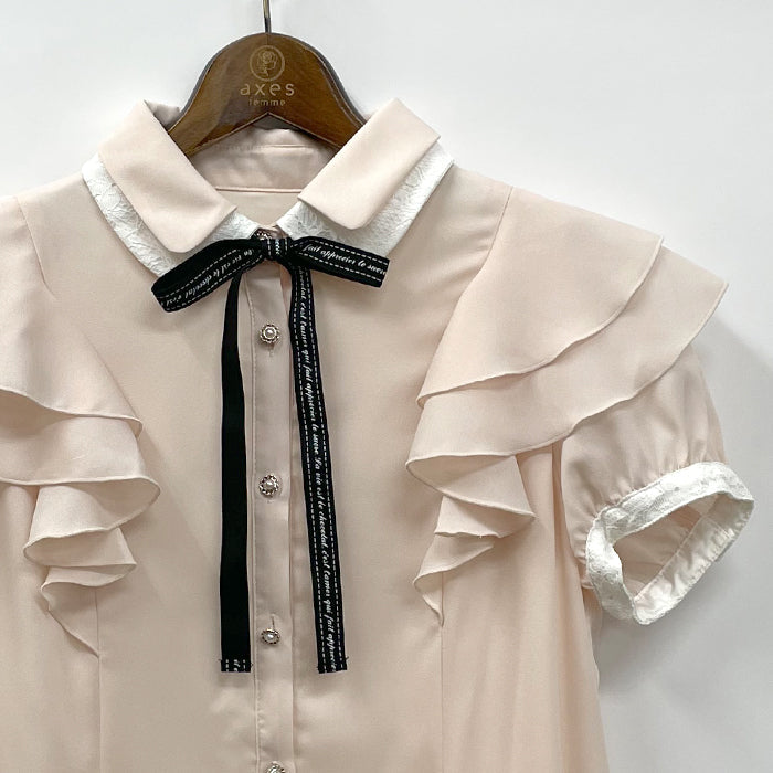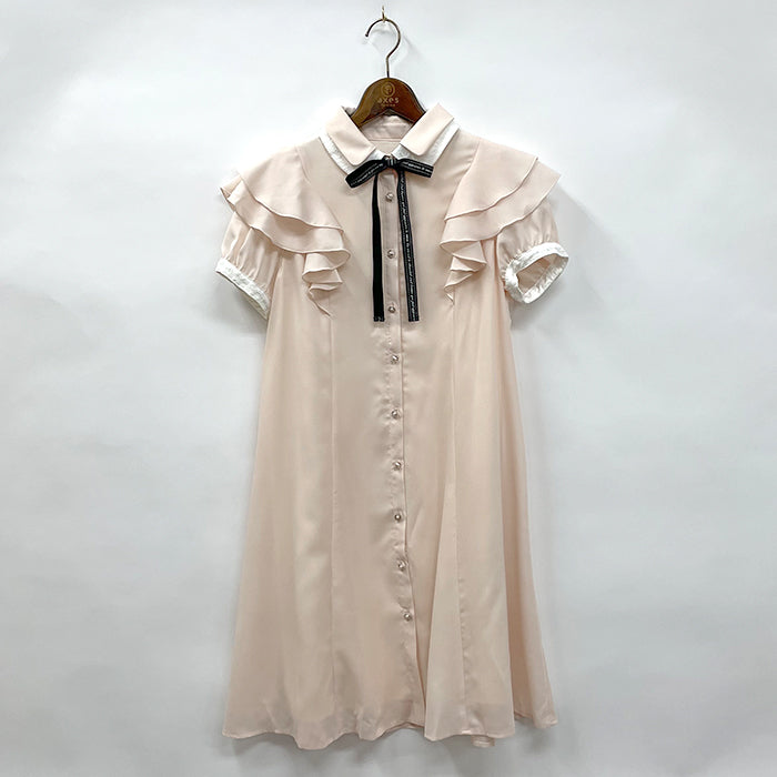 たっぷりとした肩フリルが顔周りを華やかに彩るワンピースです。