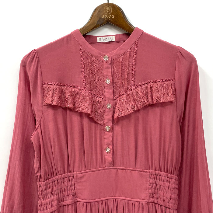 フェミニンさ漂うふんわり袖に、繊細なレースをあしらったフロントデザインもポイント。