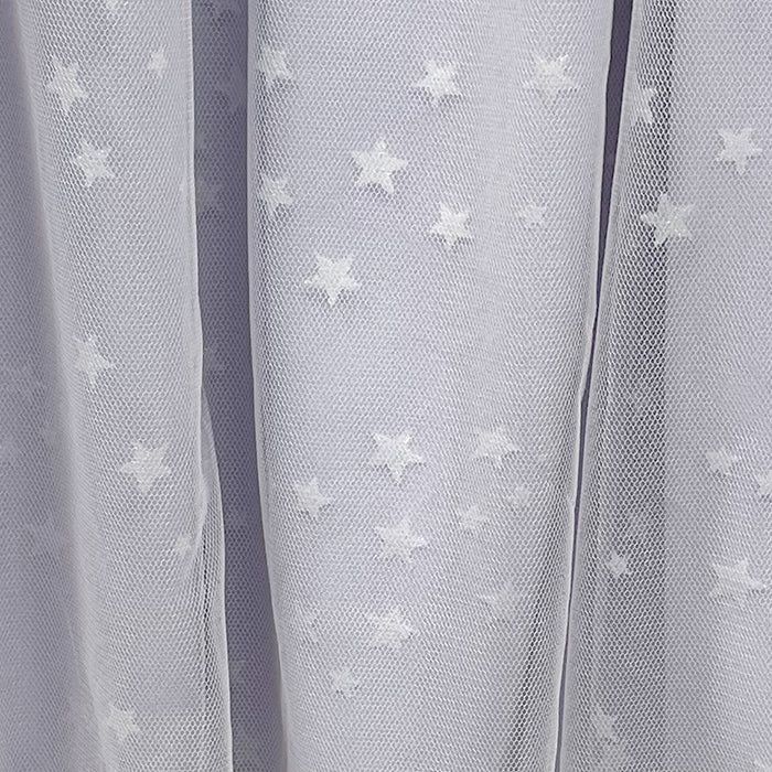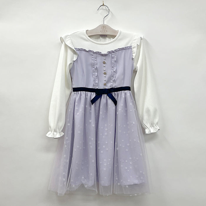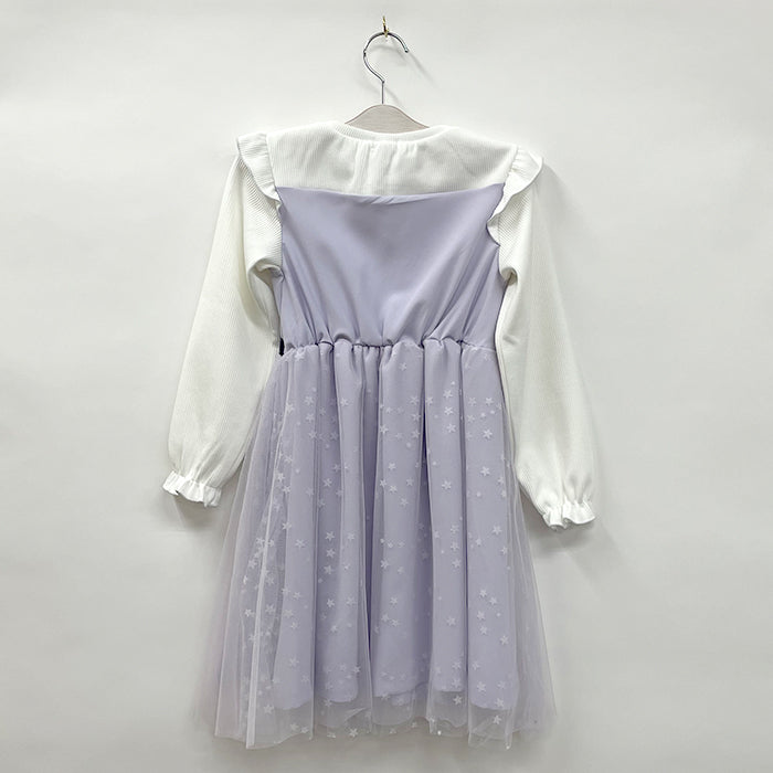 オーロララメの星柄チュールに、無地チュールを重ねたふんわりシルエットのワンピースです。