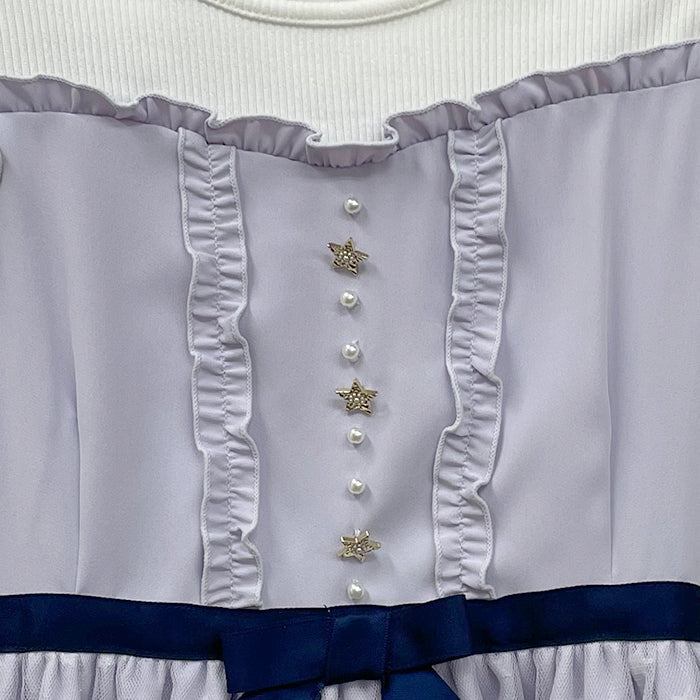 チュールの柄に合わせ、胸元には星型ボタンとパールを合わせたデザイン。
