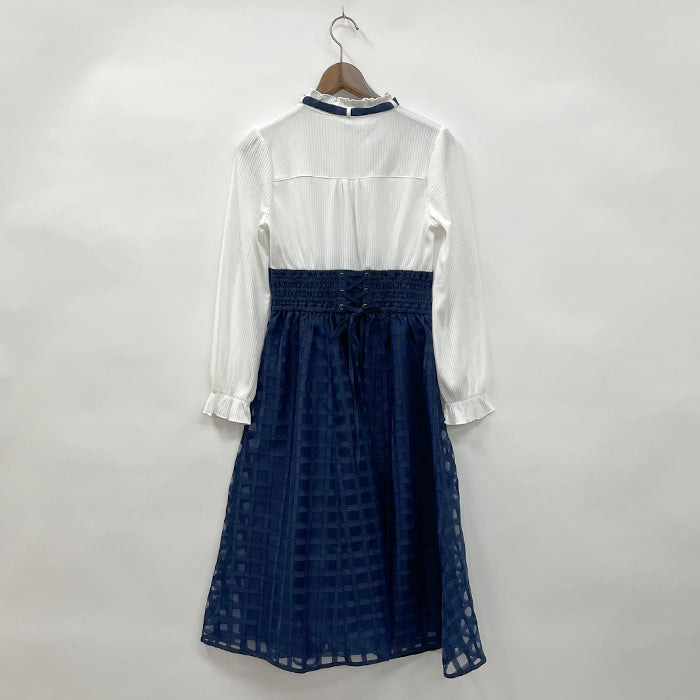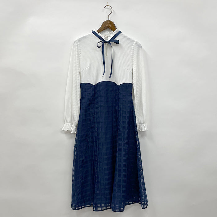 リブ×シアーチェックの切替がキレイ目な印象のワンピースです。
