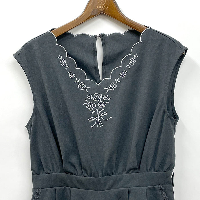 胸元のスカラップとフラワーモチーフ刺繍デザインがポイント。