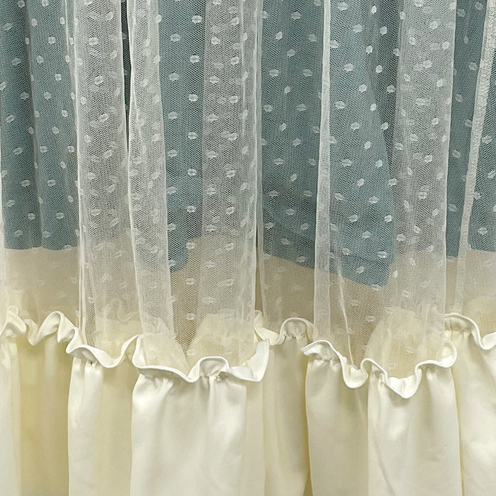 カジュアルな裏毛のカットソー生地とドットチュールを合わせました。