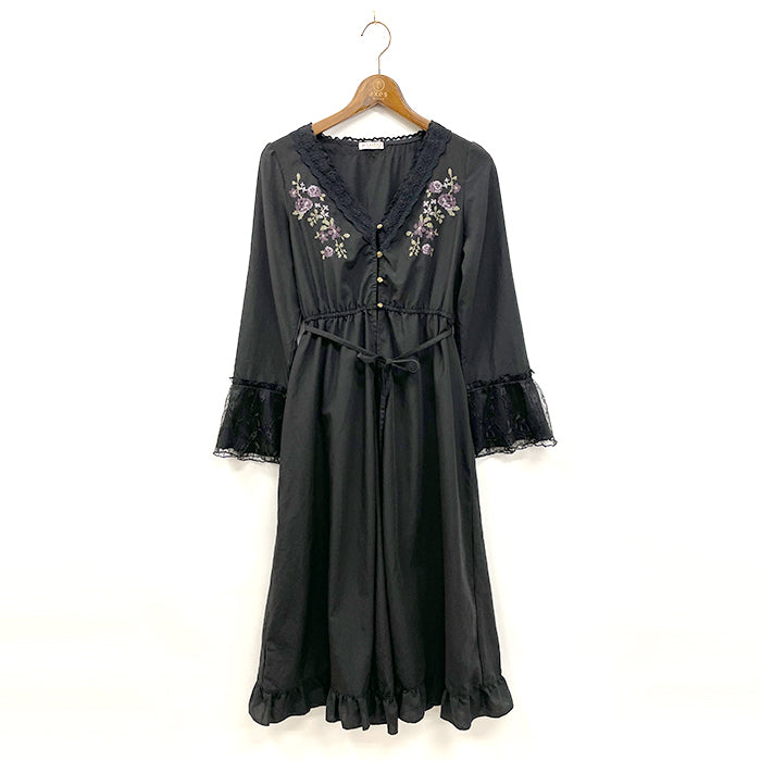 「SAJOU」で使用される刺繍テクニックのクロスステッチでバラ×お花の刺繍を施し、ガウンに落とし込みました。
