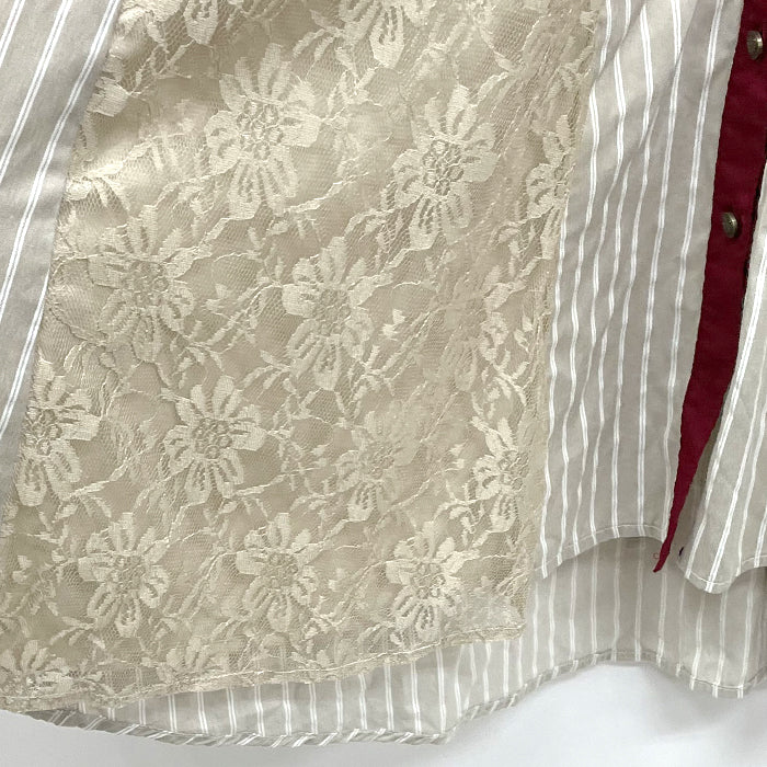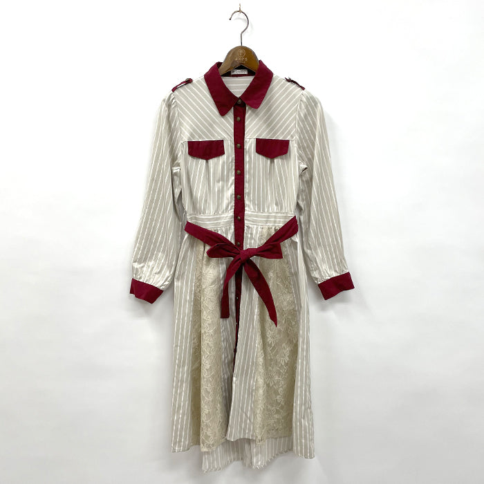 1枚でコーディネートが決まる、ストライプとレースを組み合わせたワンピース。