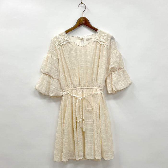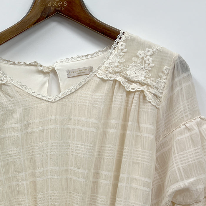 肩にあしらったレースや袖ボリュームのデザインでガーリーなテイストもプラス♪