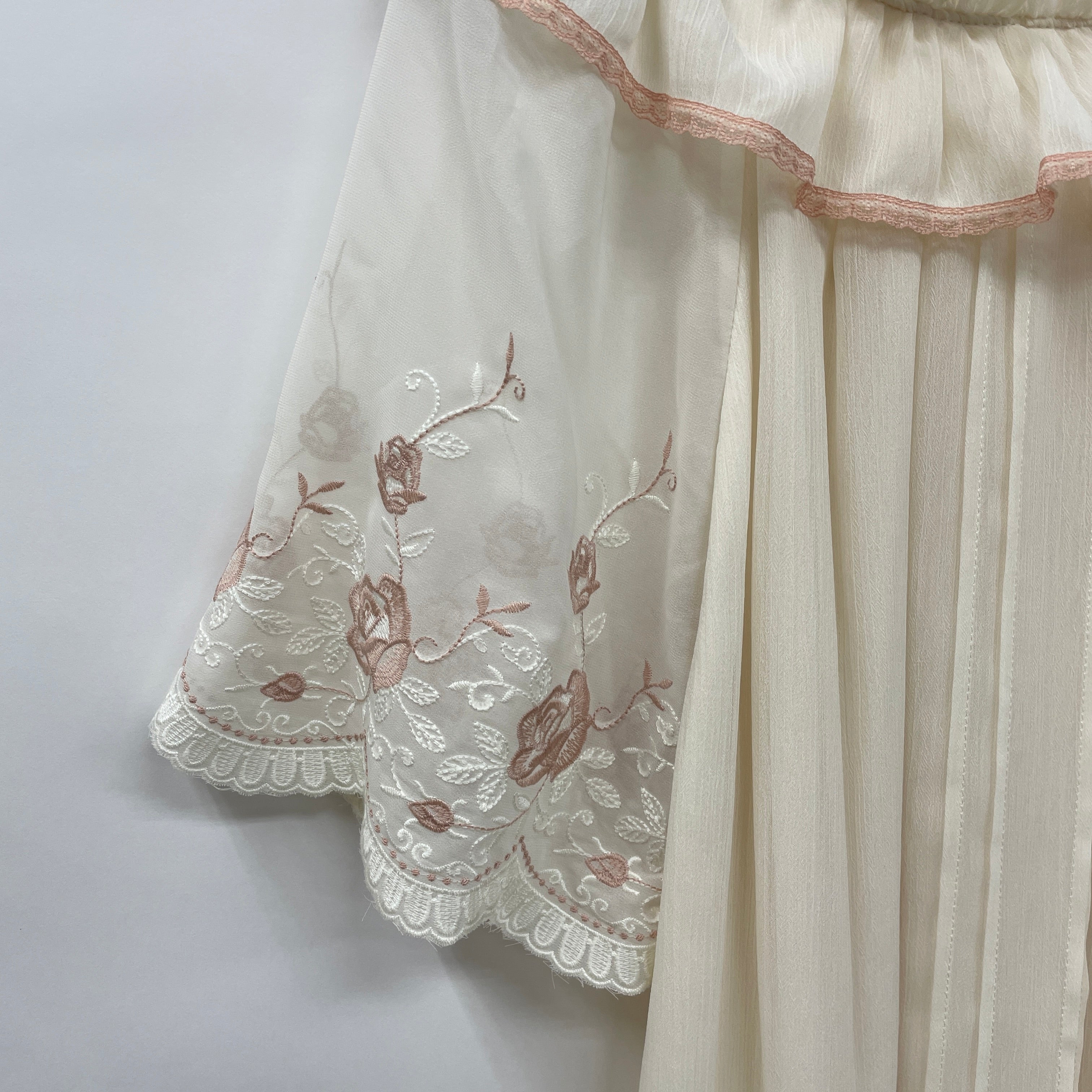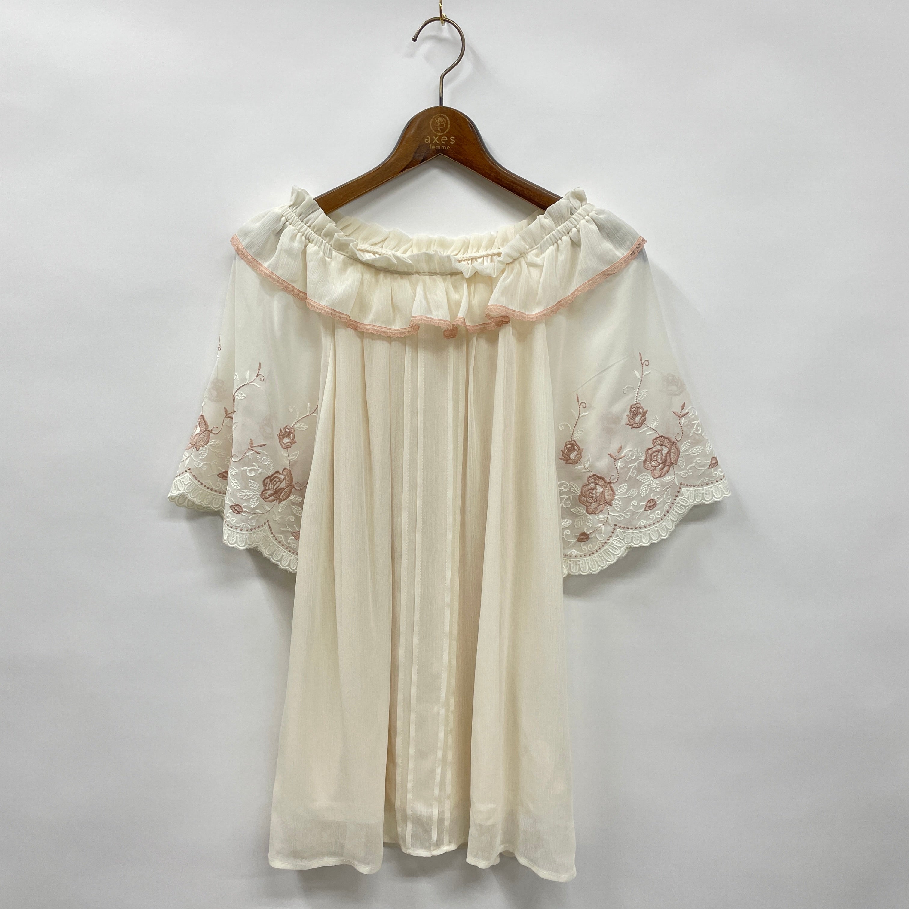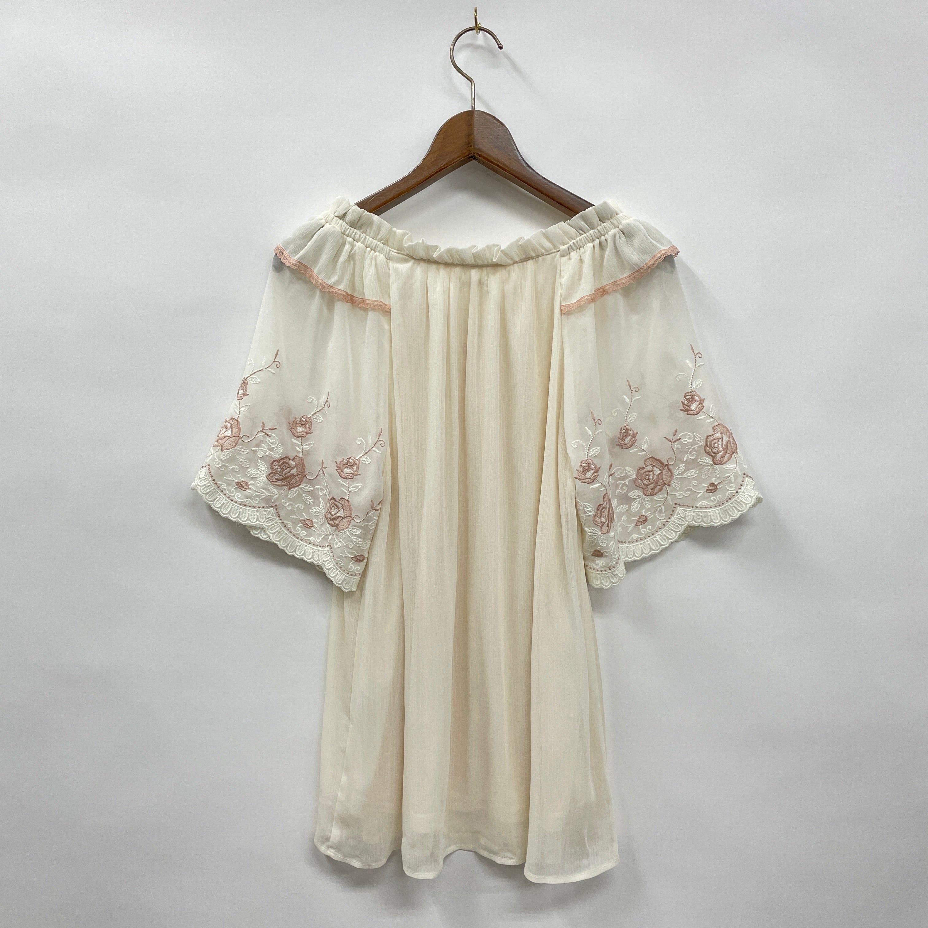 動くたび華やかに揺れる、袖の花刺繍デザインがポイント。