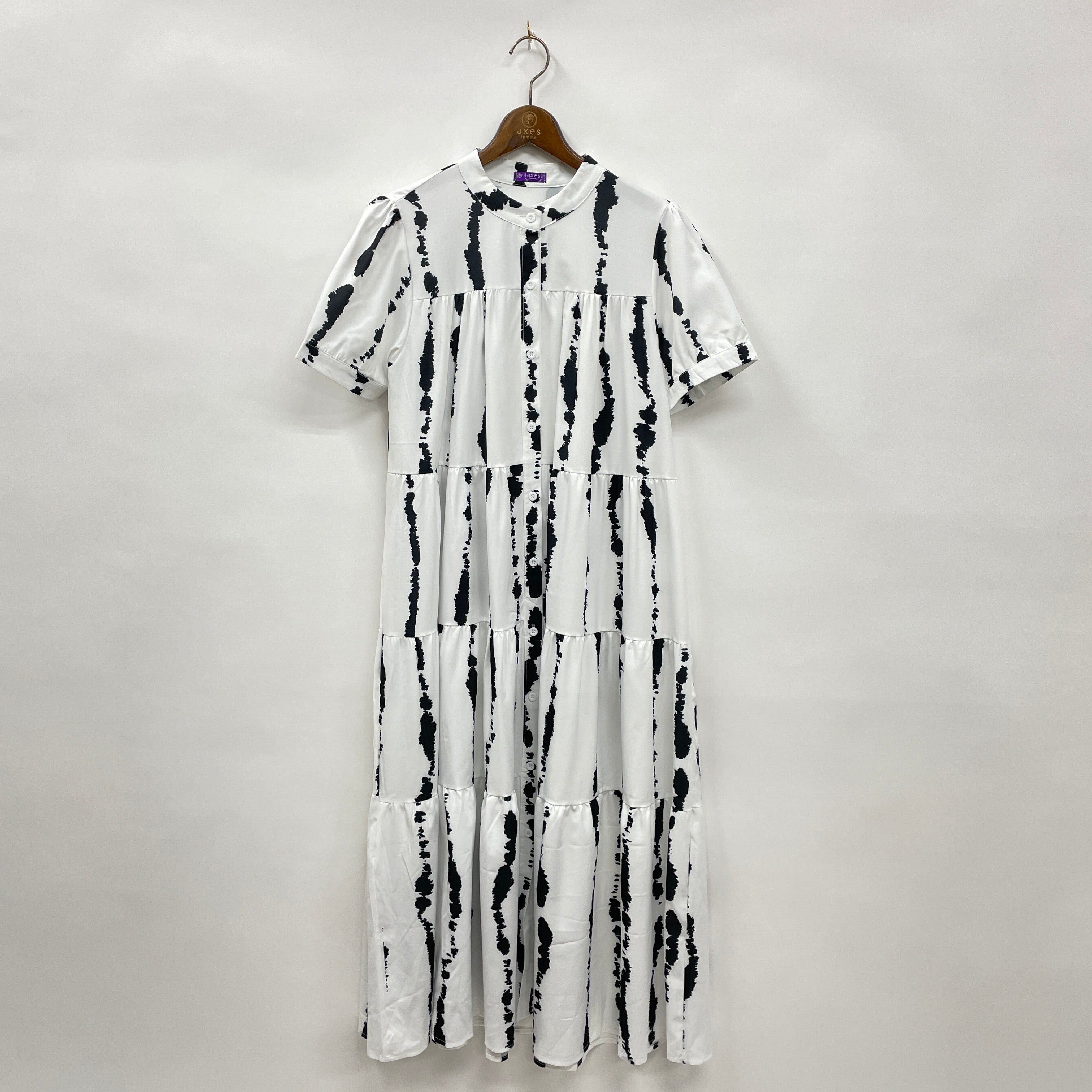 このロングワンピースは、Aのブラックベース、Bのホワイトベース、Cのブラックベースの3種類のデザインがあります。