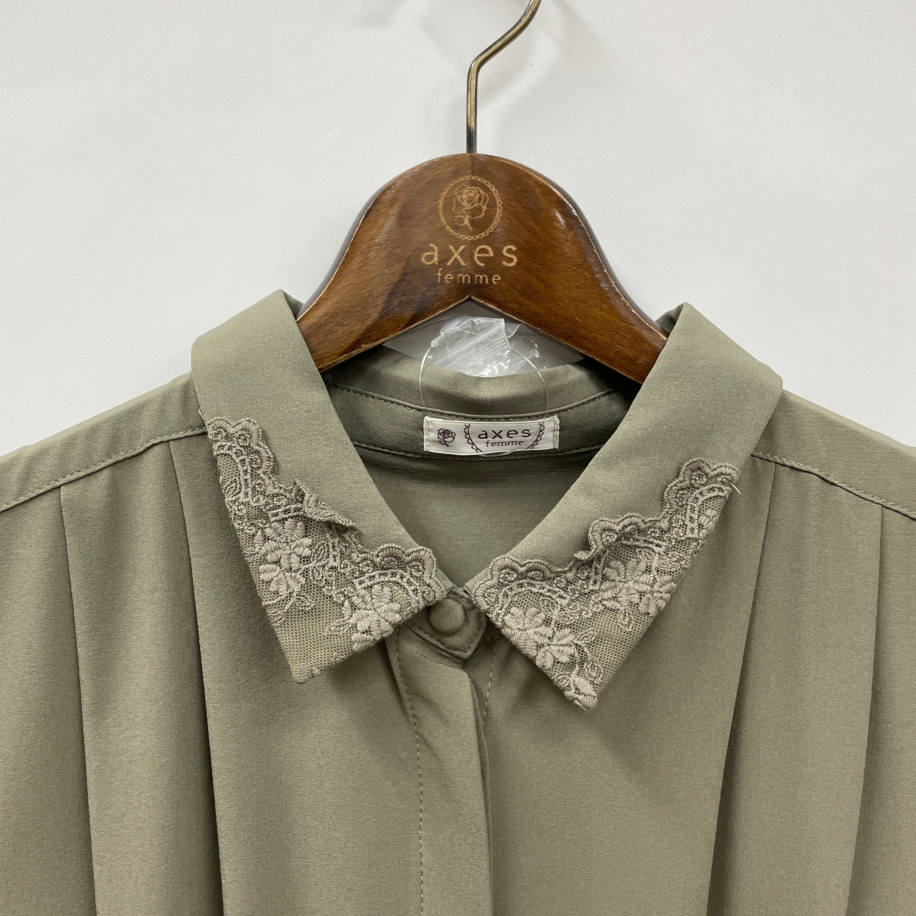 襟先にさりげないレースデザインを落とし込みフェミニンな印象をプラス。