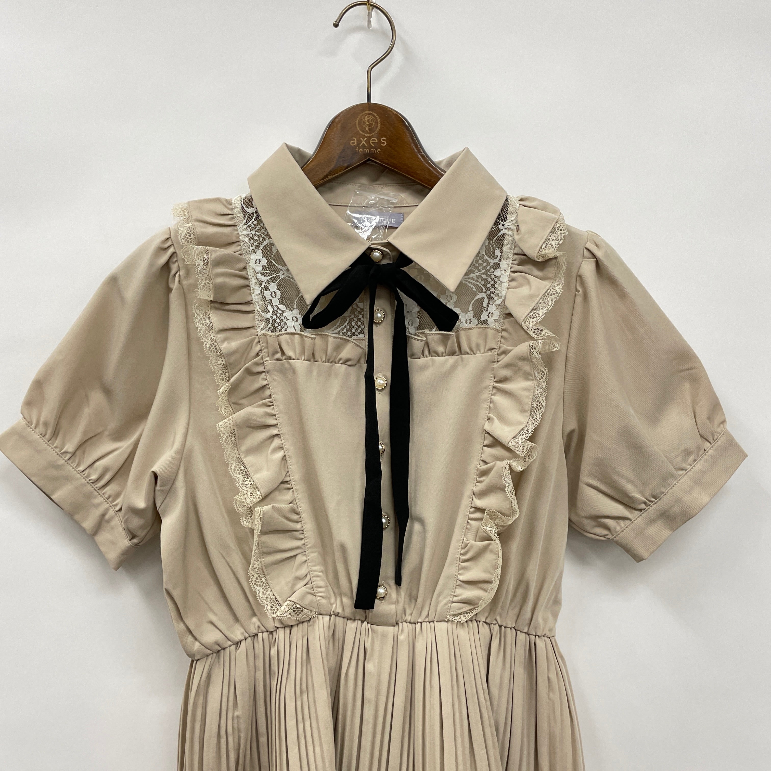 消しプリーツデザインで裾に向かって広がるシルエットでガーリーに仕上げました。