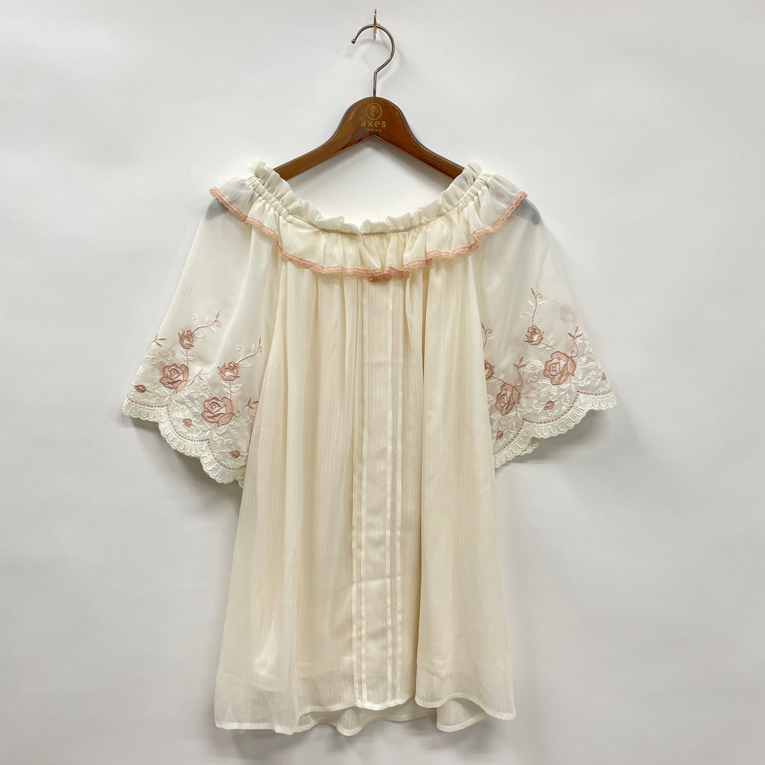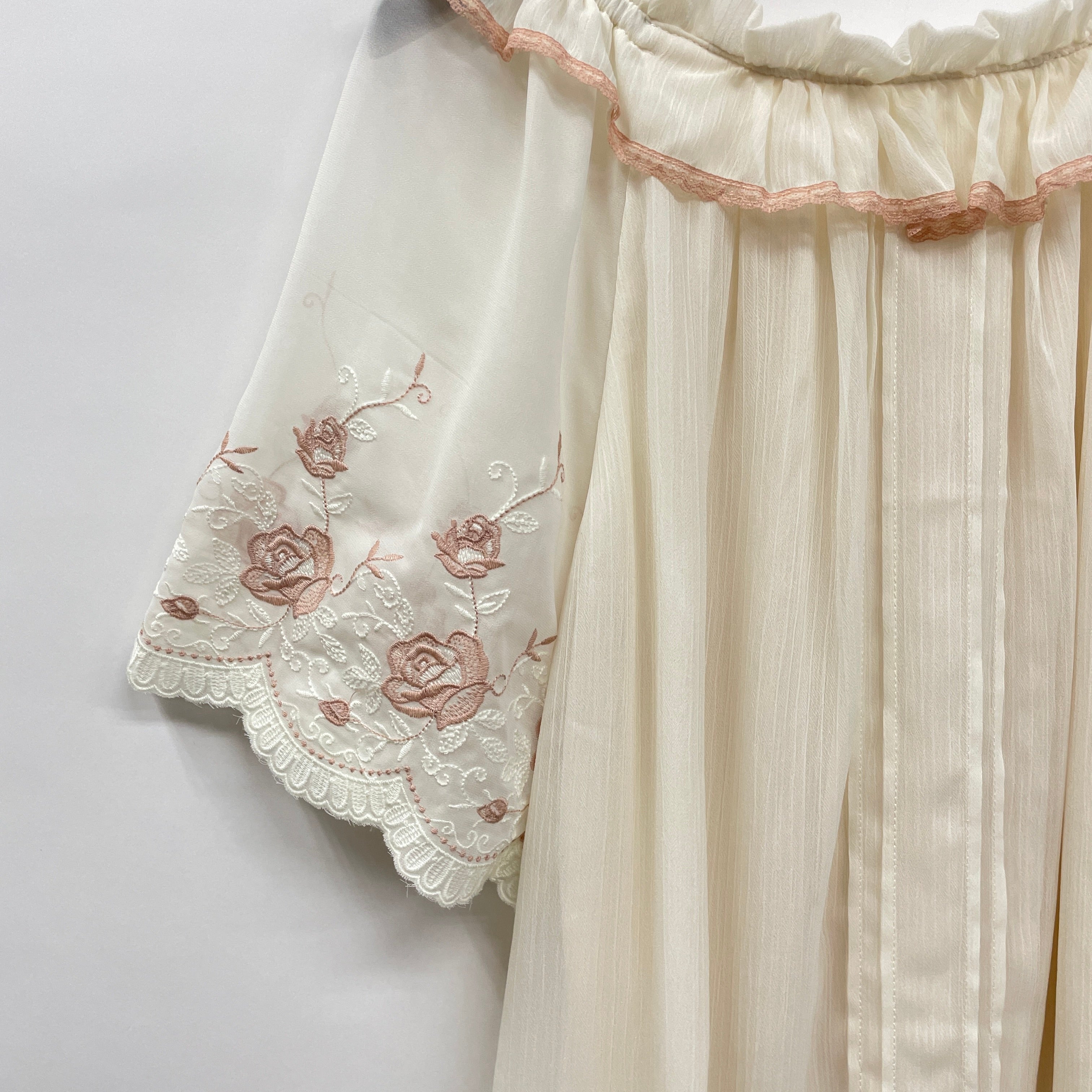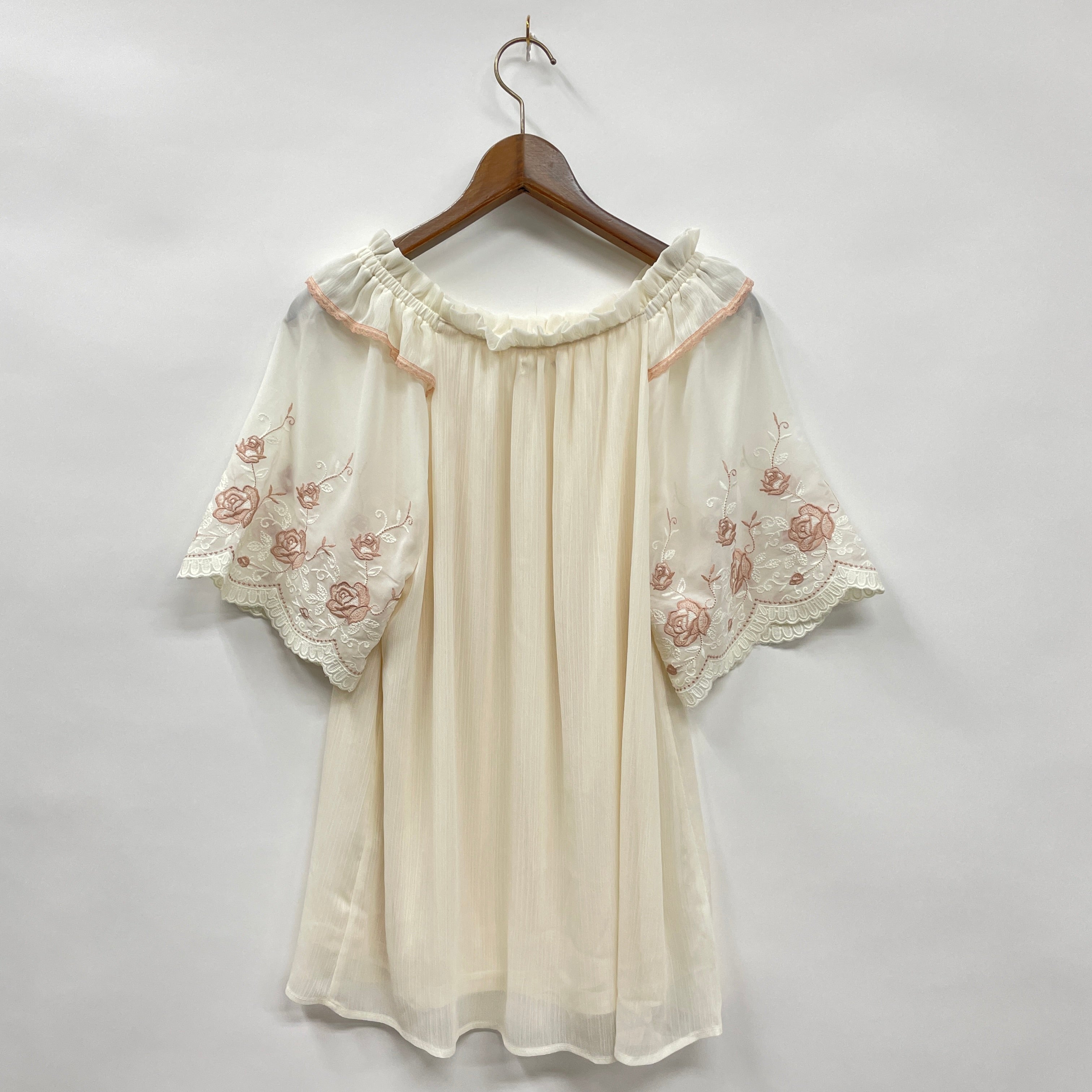 刺繍袖楊柳シフォンチュニック