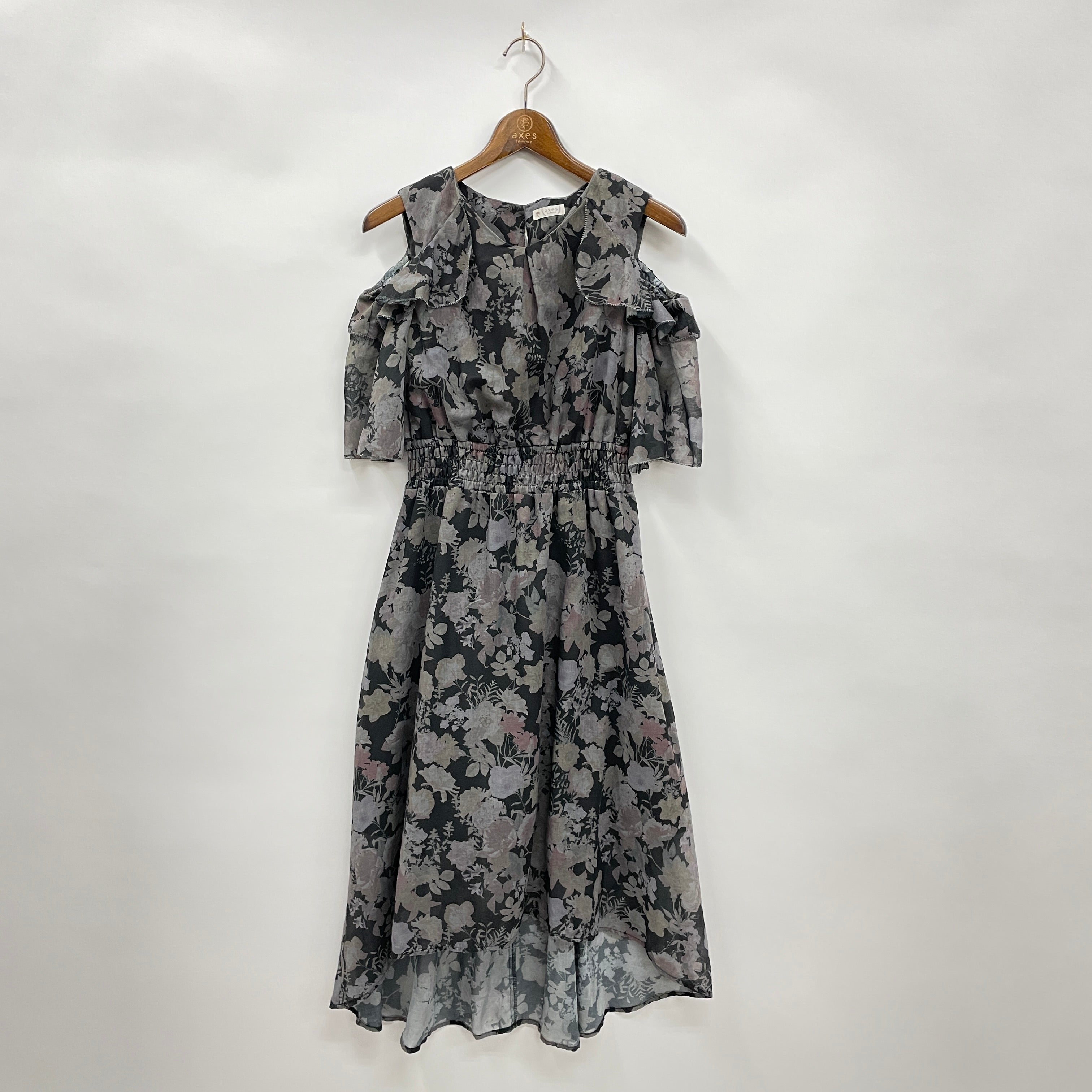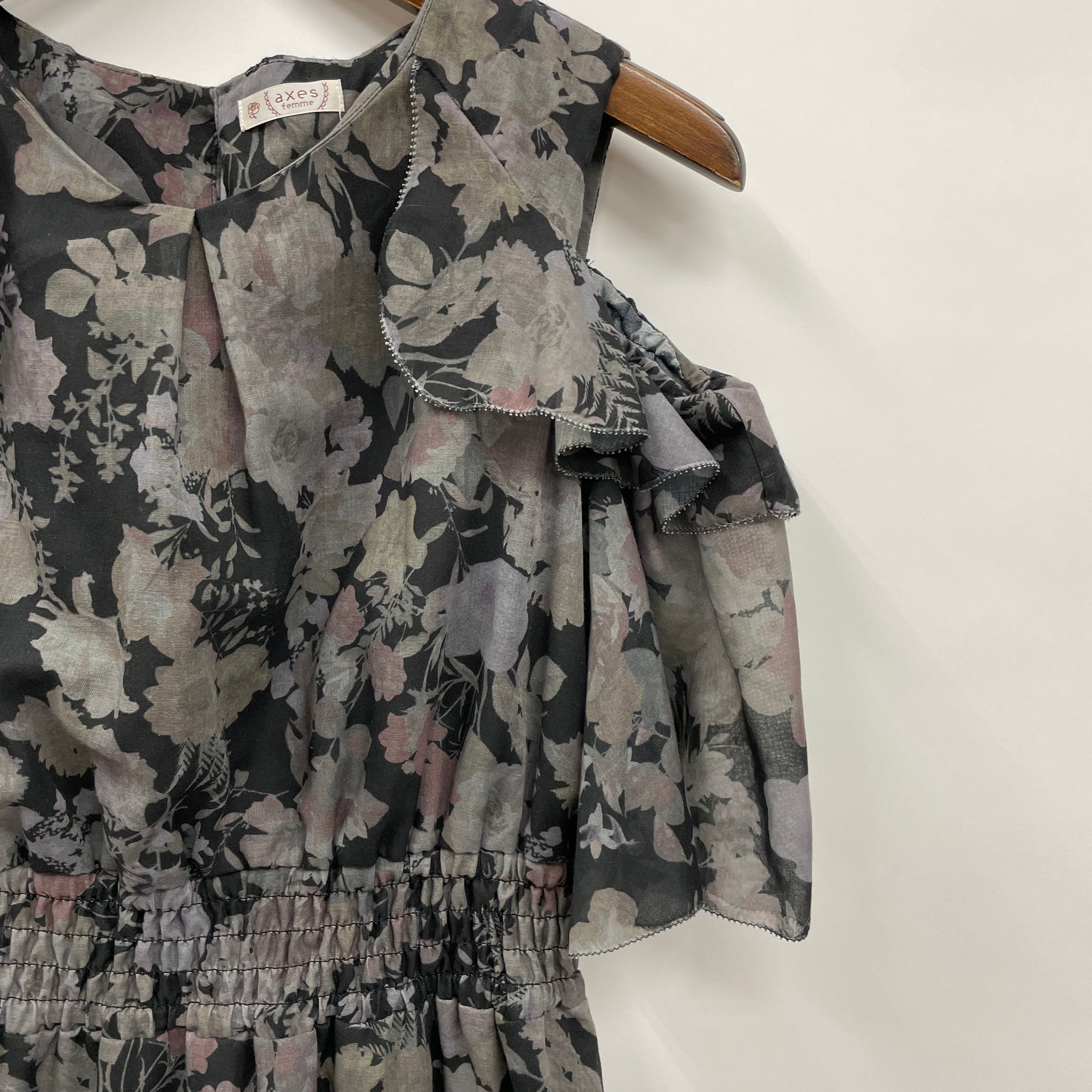 肩あきデザインの爽やかなワンピースです。前後差のあるフィッシュテールシルエットで、すっきり着られるアイテム。