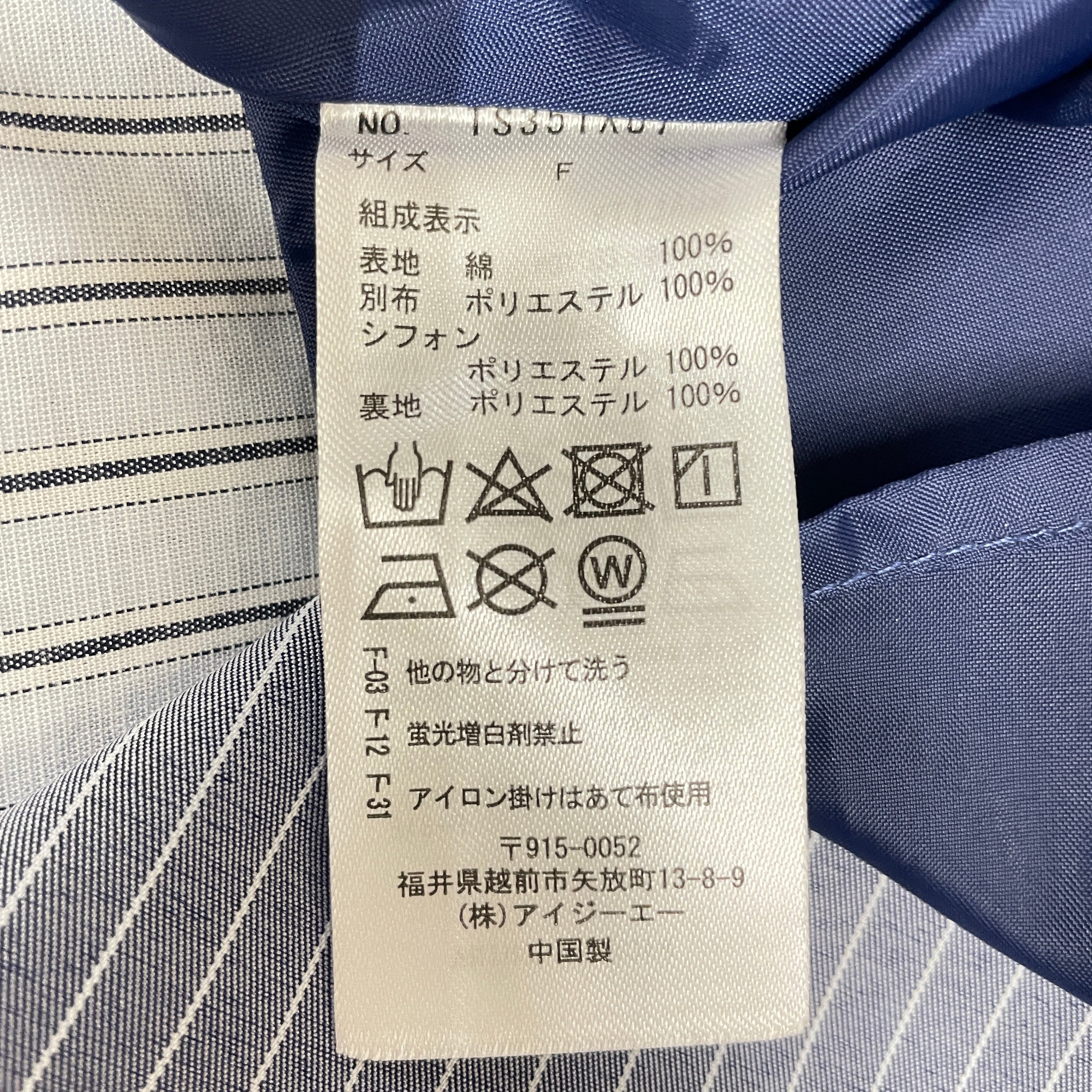 | サイズ | 着丈 | バスト | 肩幅 | ウエスト |