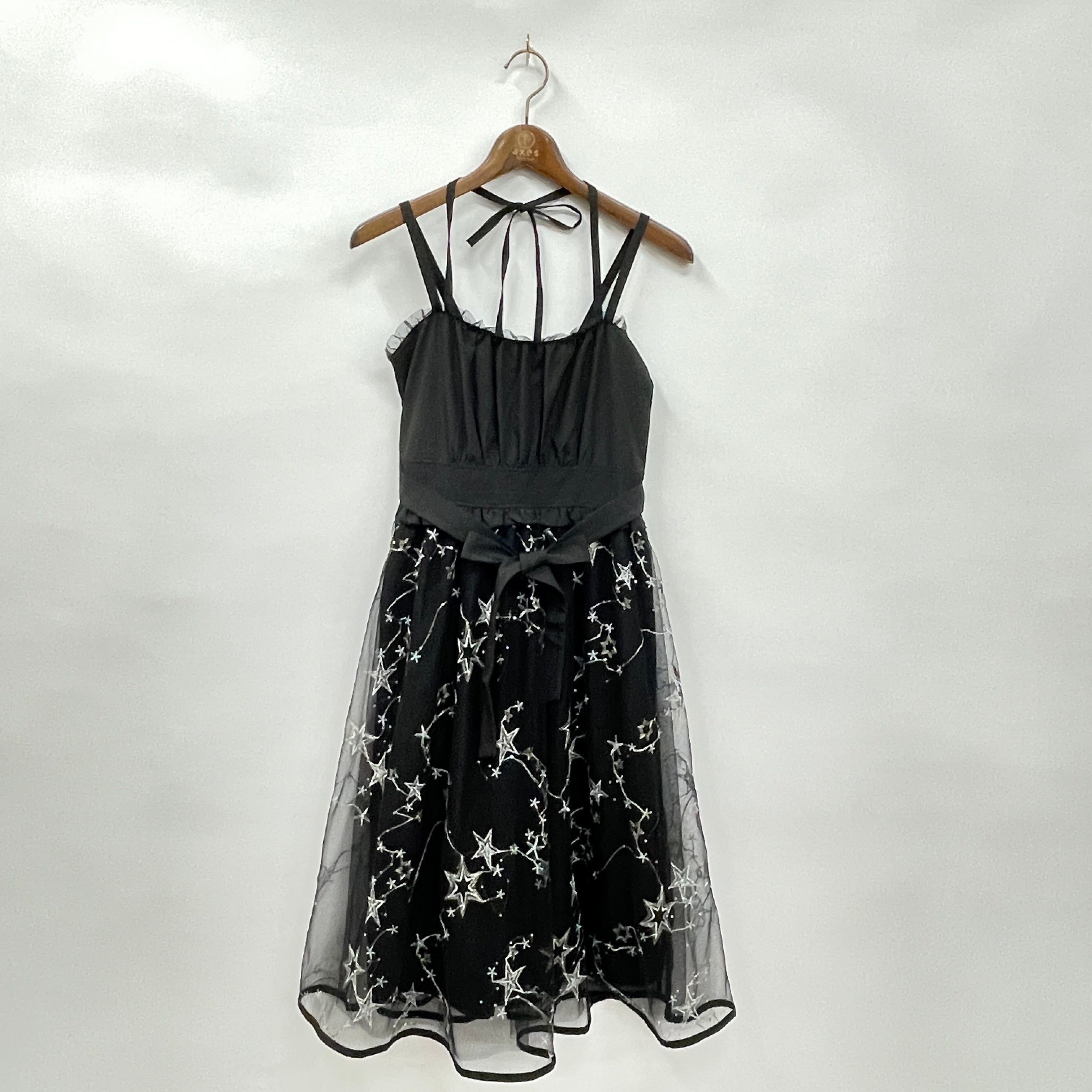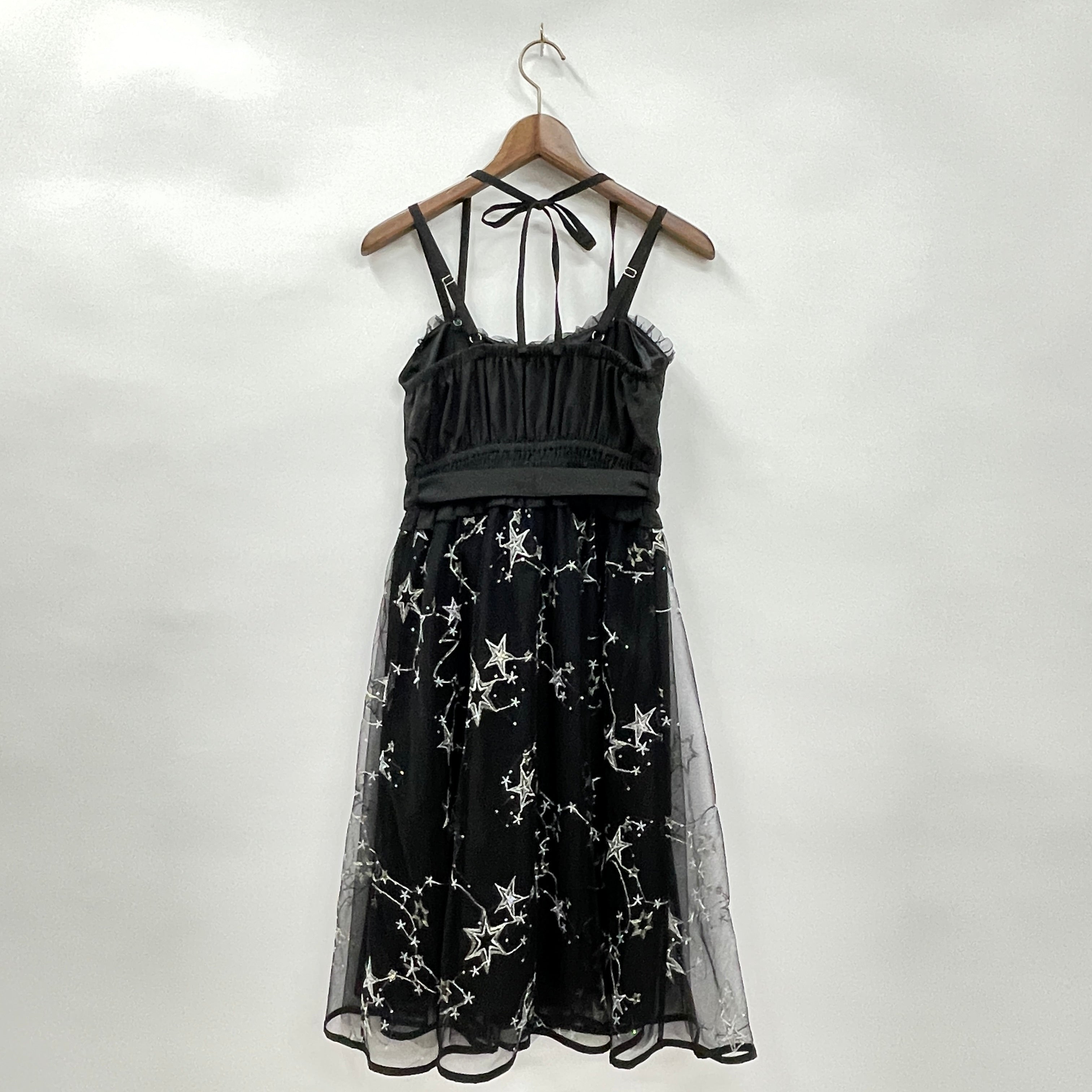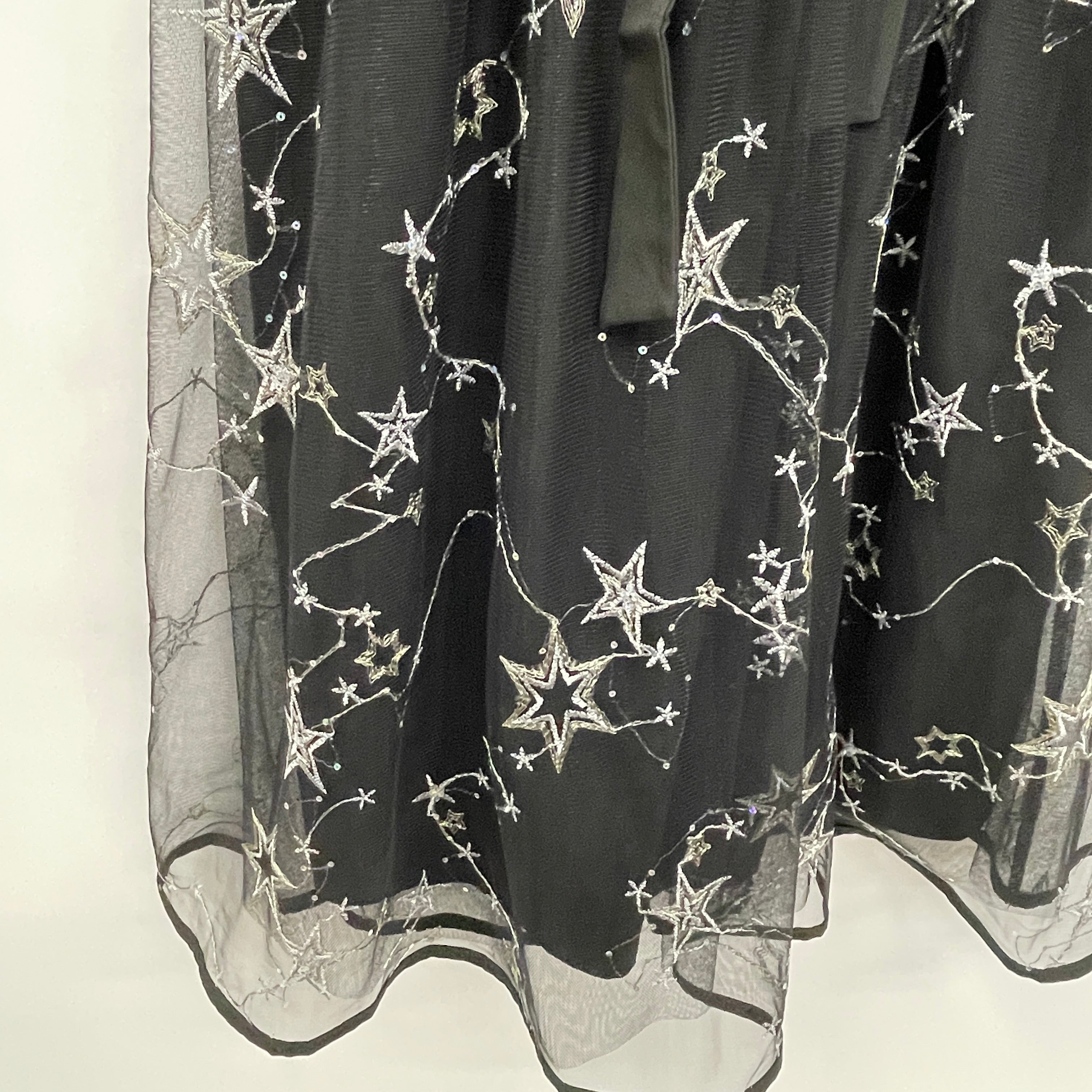 キラキラと光る星柄刺繍がポイントのキャミワンピースです。