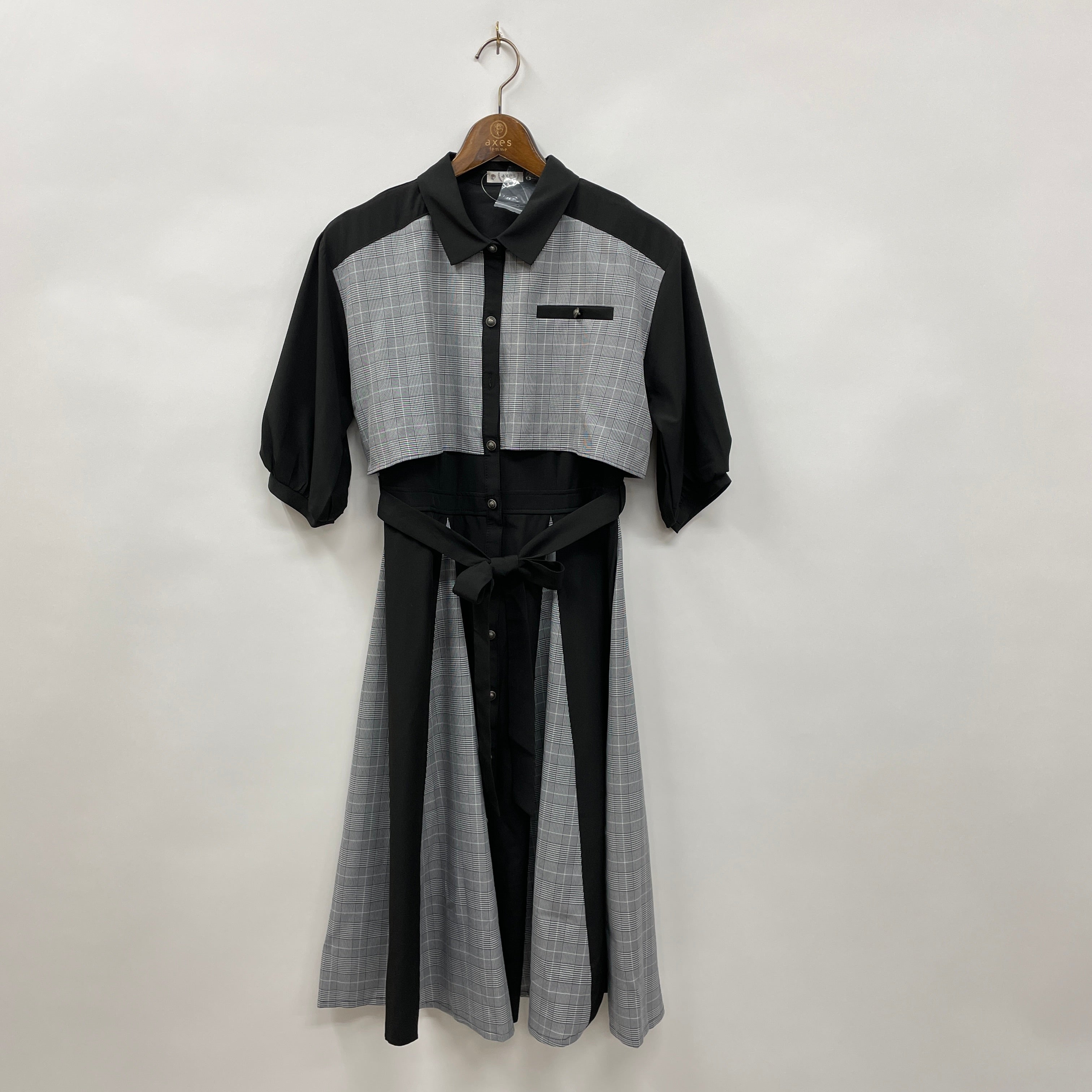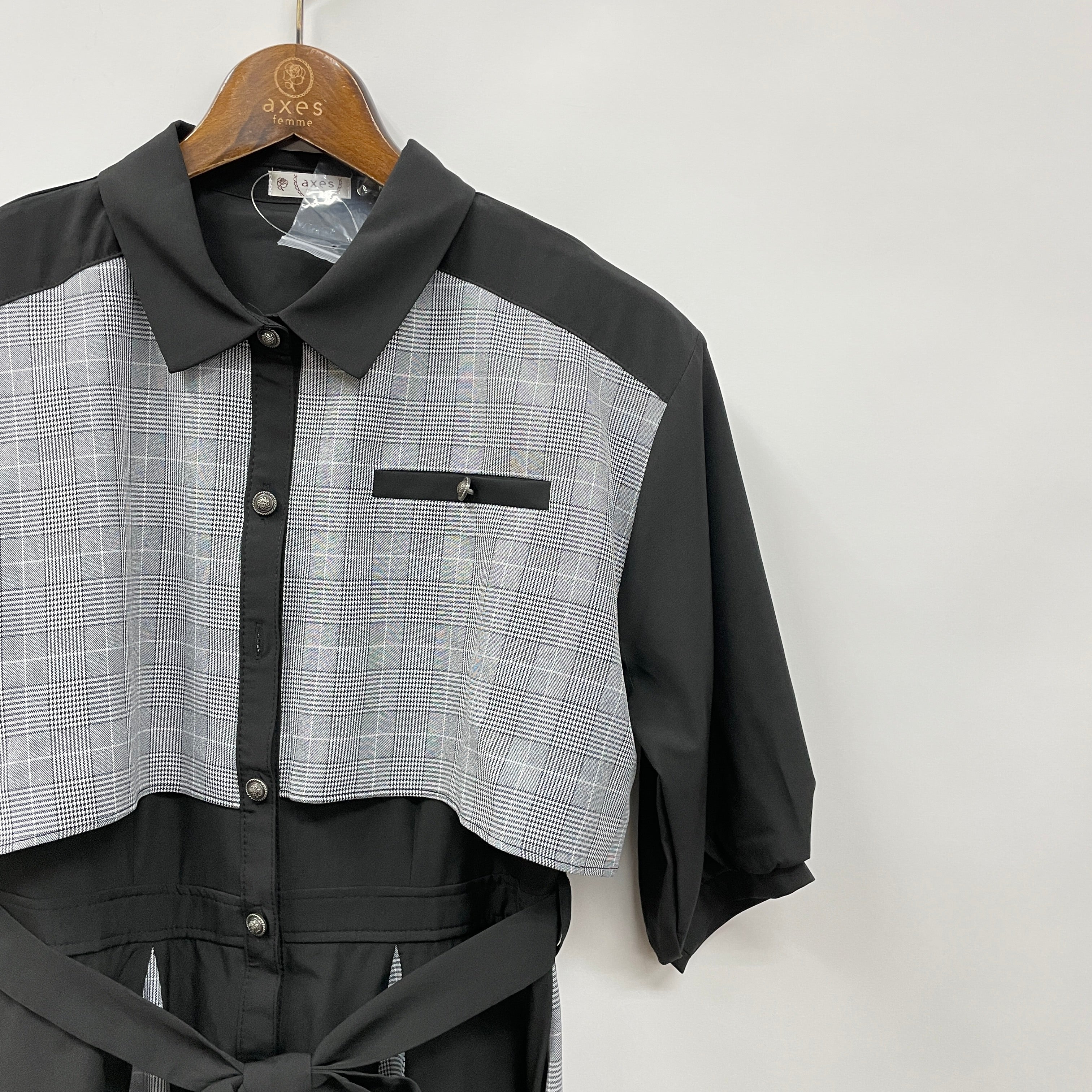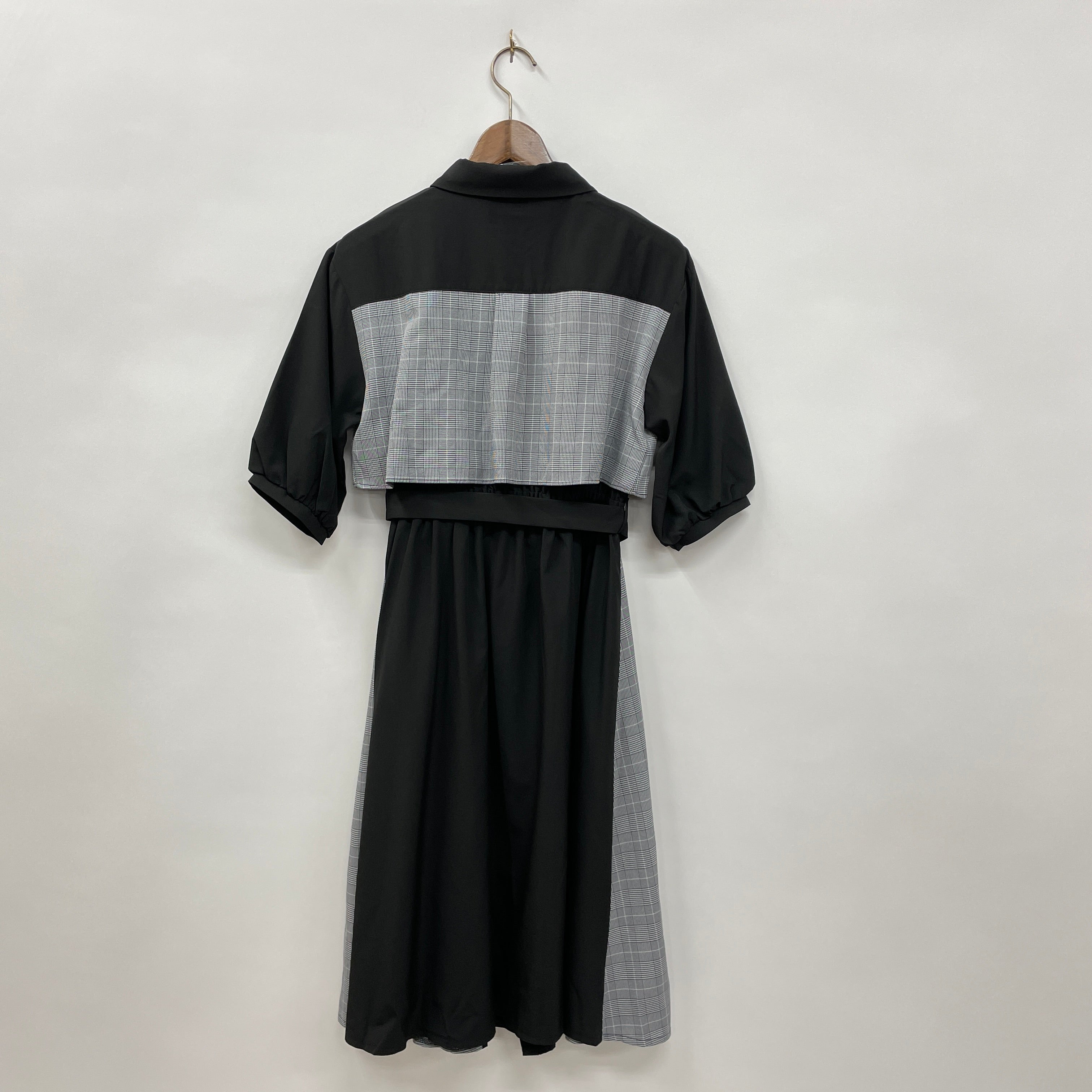 チェックと無地の切り替えがポイントです。春夏シーズンに着やすいさらっとした素材を使用しています。