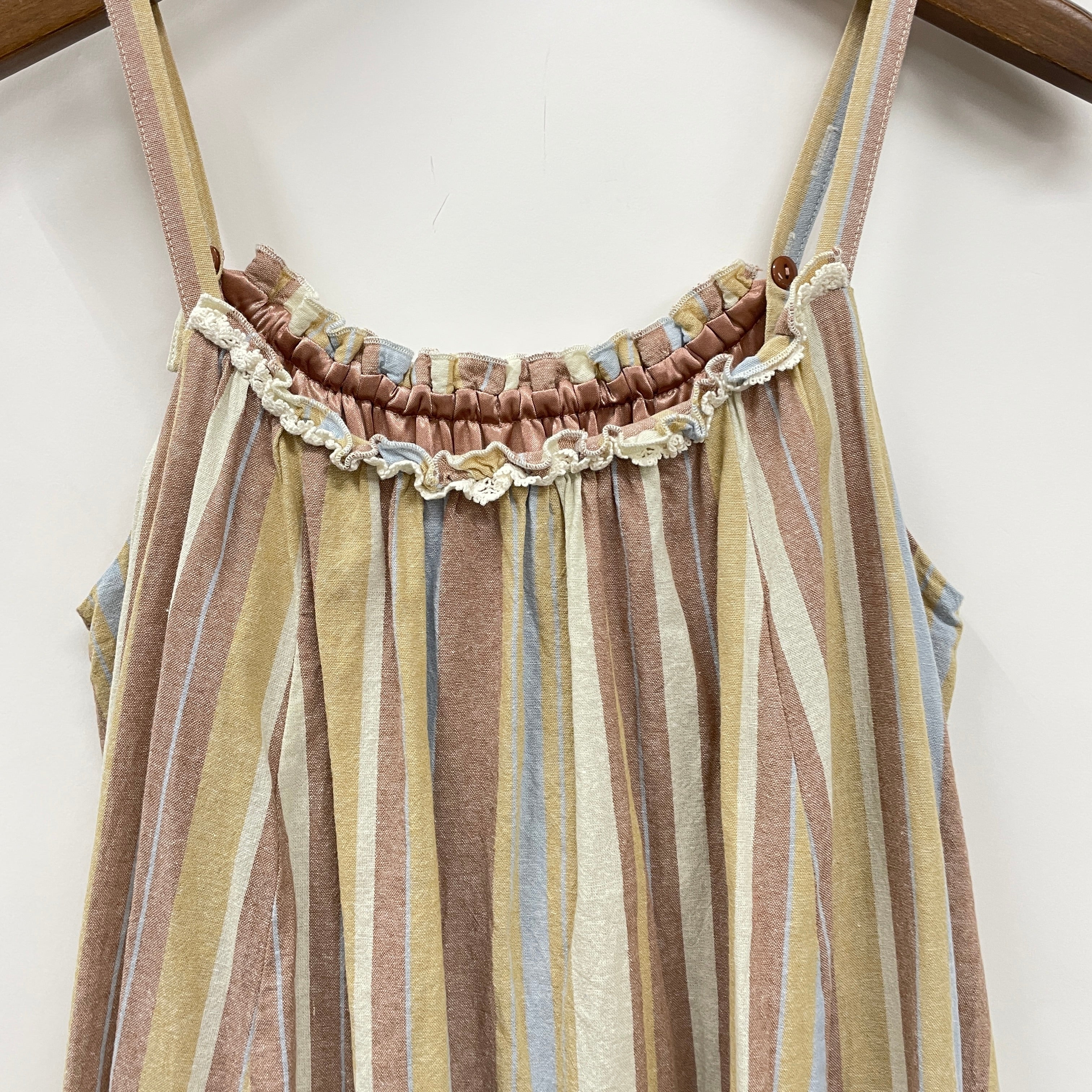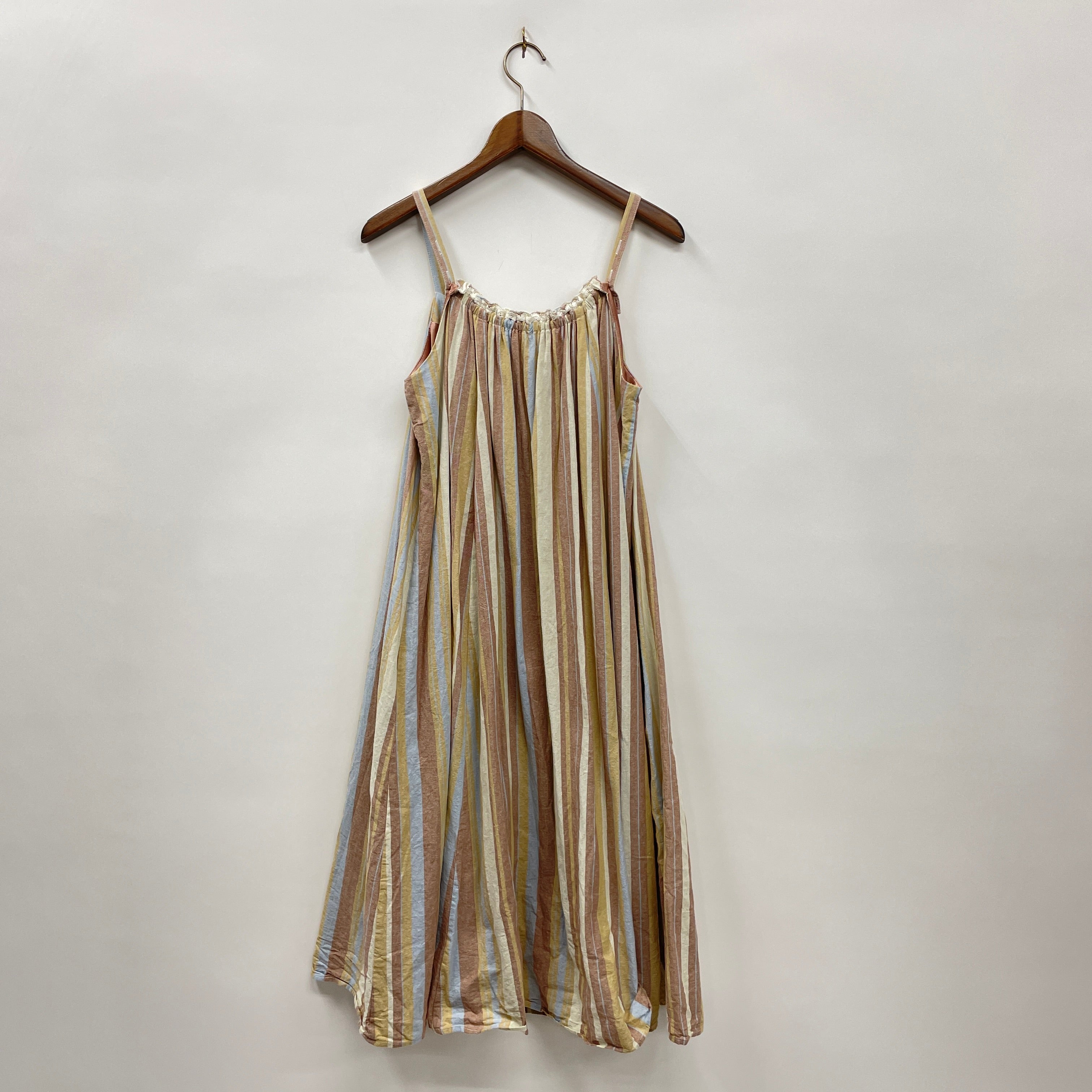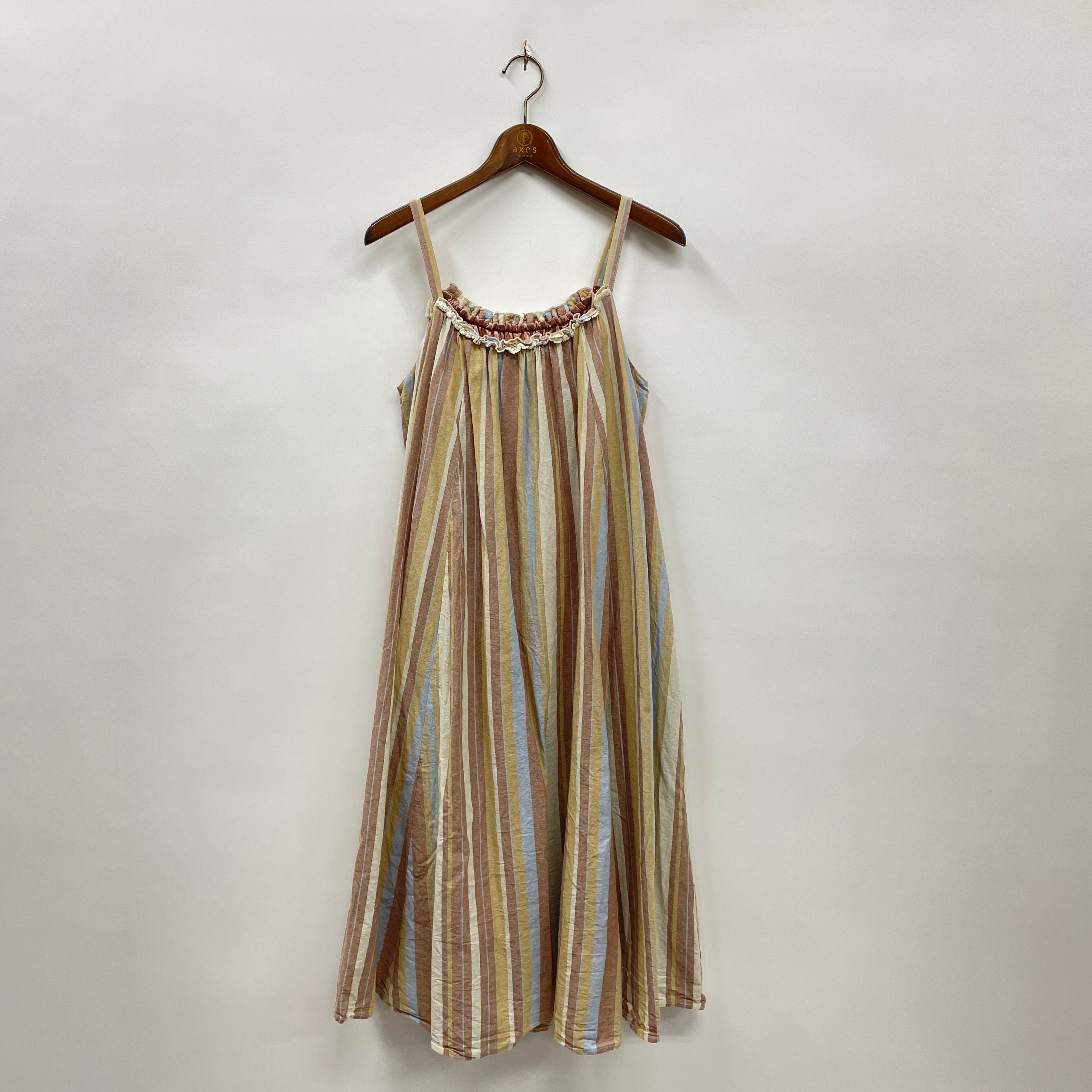 優しい色合いが目を惹く、マルチストライプ柄のキャミワンピースです。
