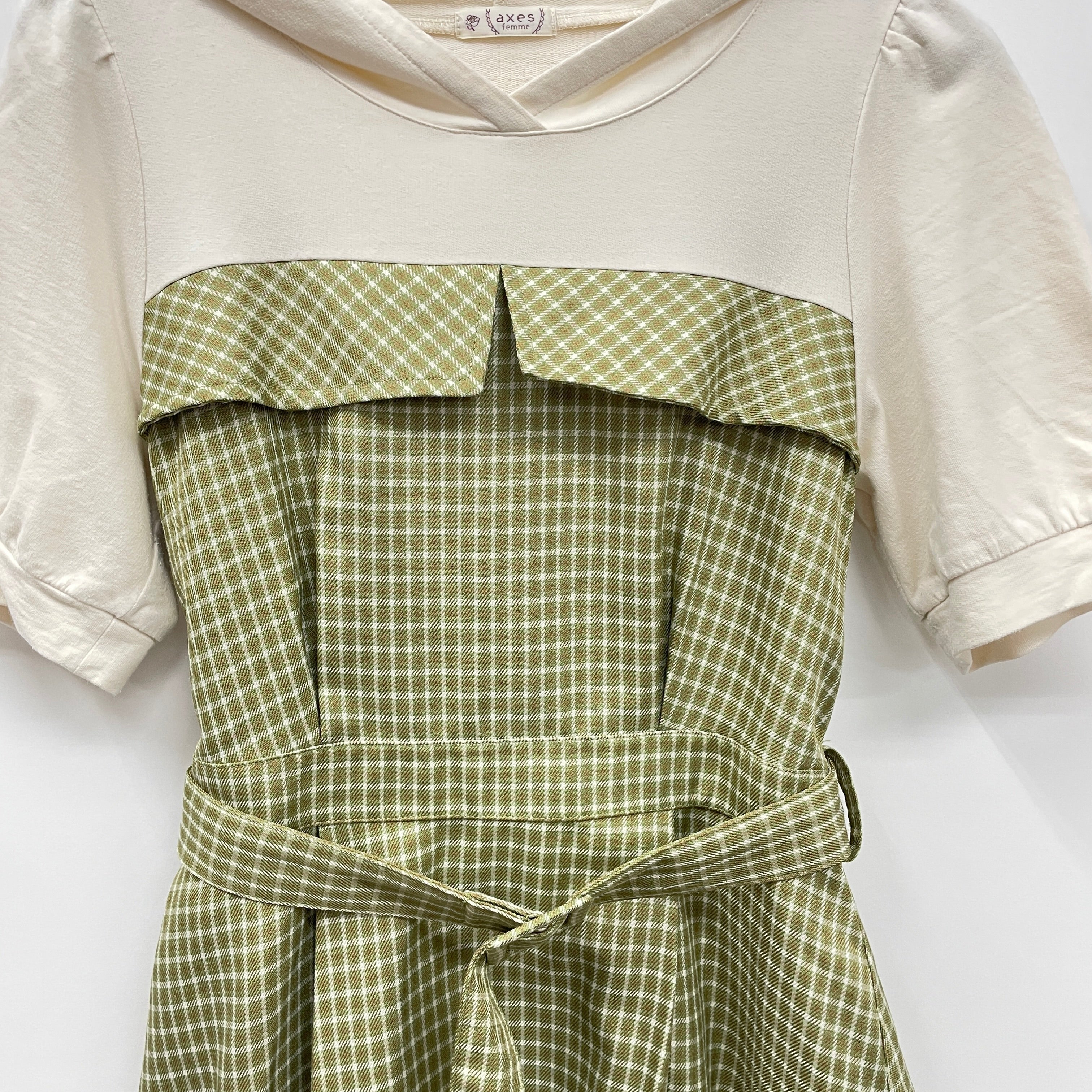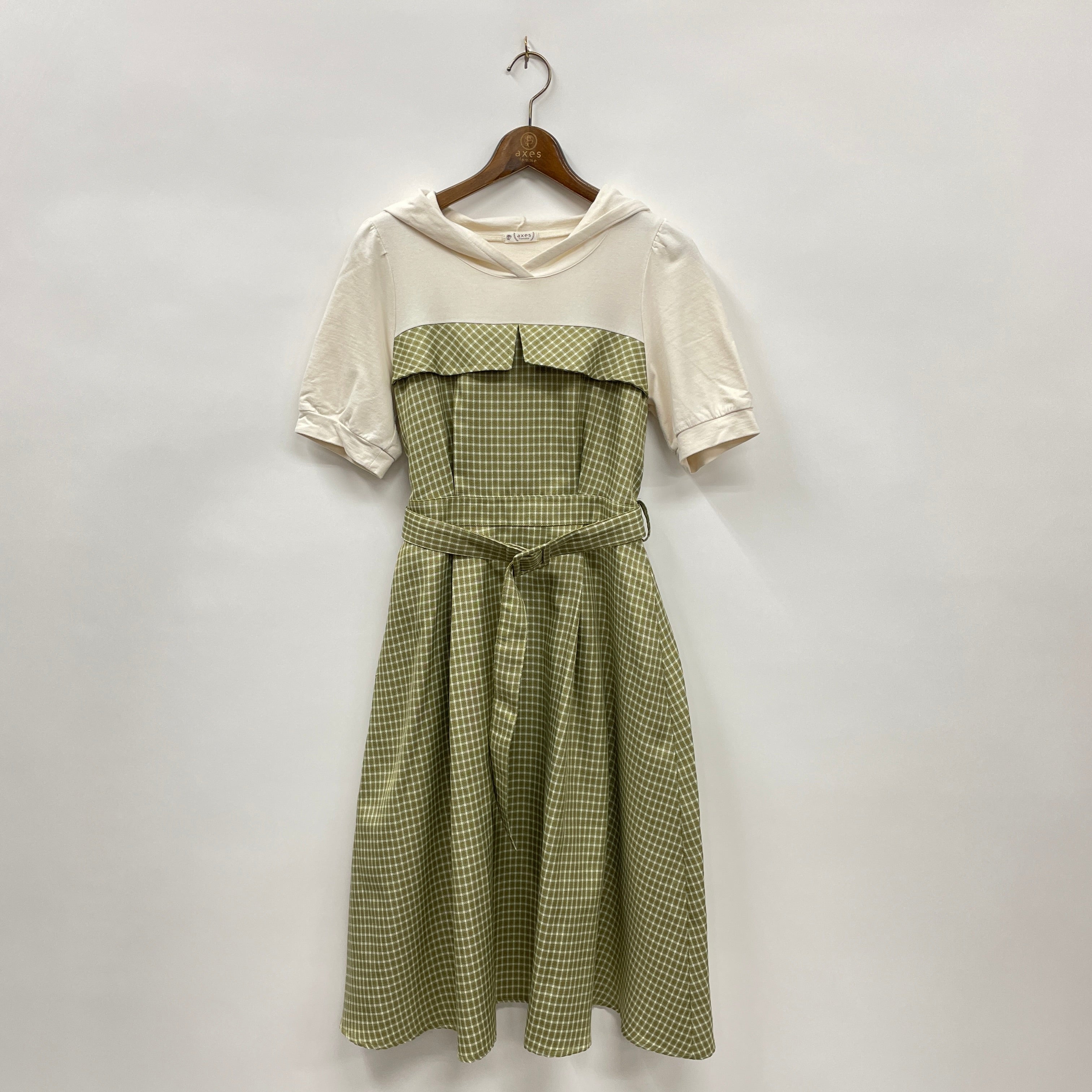 ベルト付きのウエスト切り替えデザインで、綺麗なシルエットをキープ。