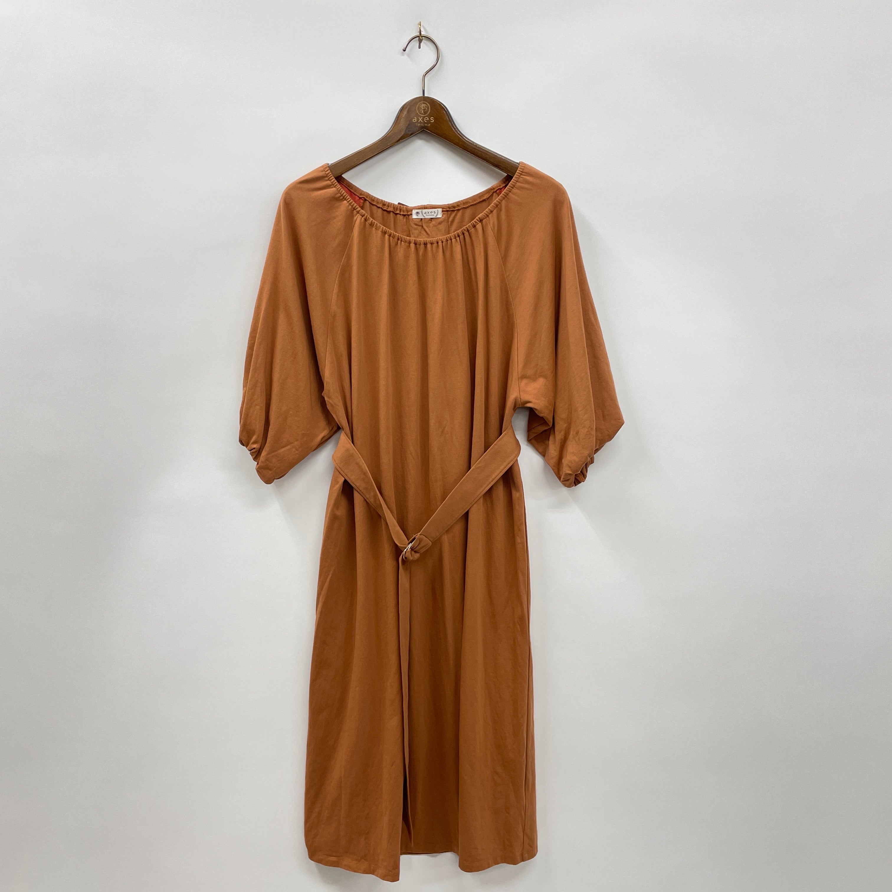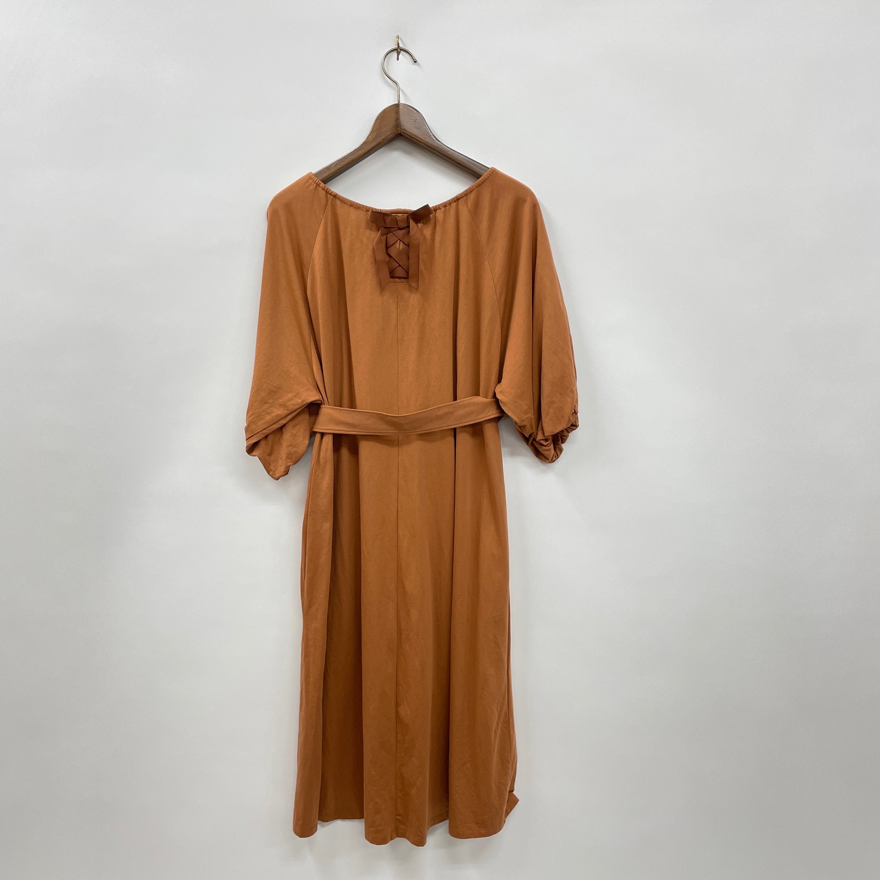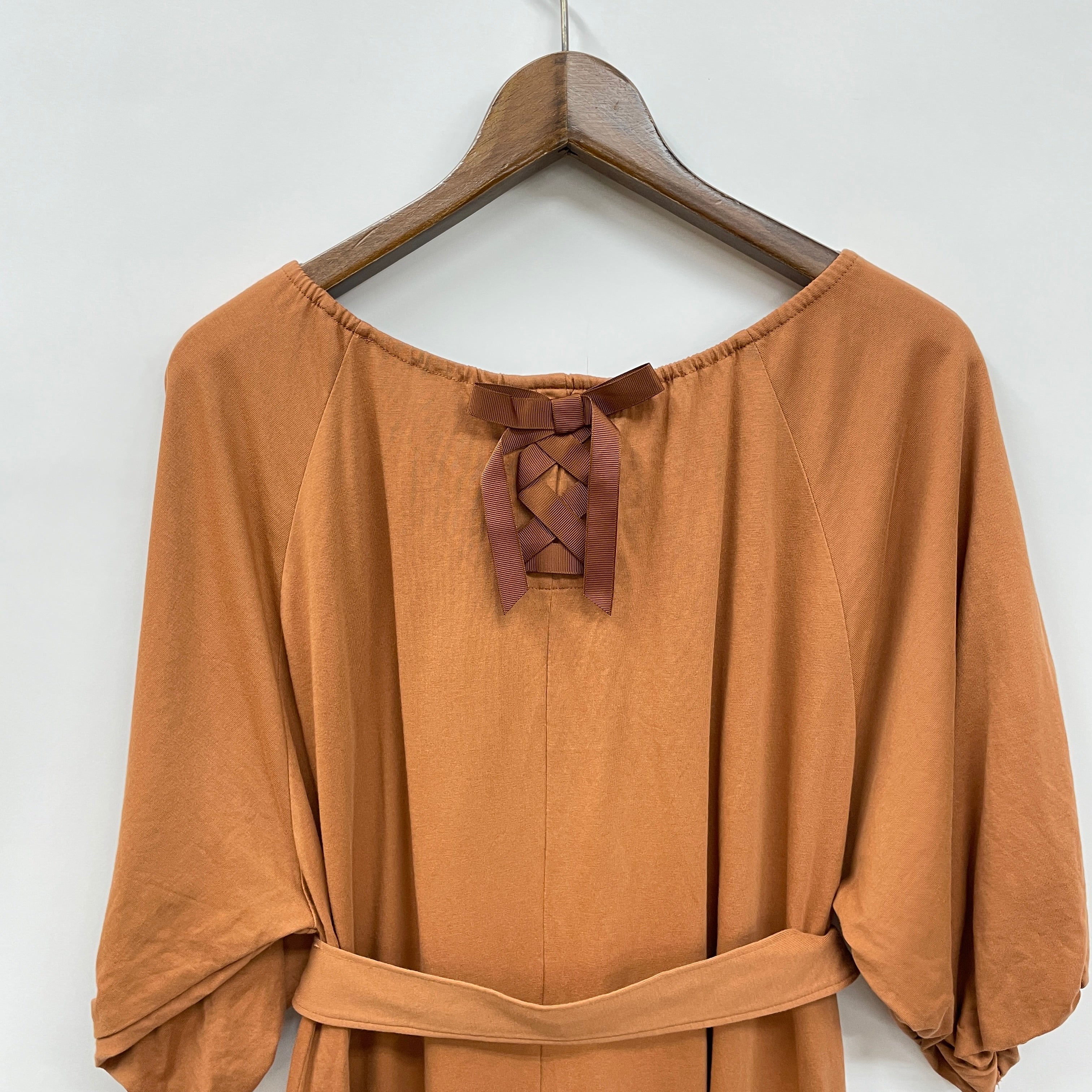 ゆったりとしたシルエットに、かぶりやすいギャザーネック、動きやすいドルマン袖で、リラックス感のあるワンピースです。