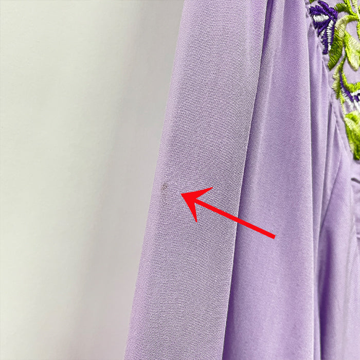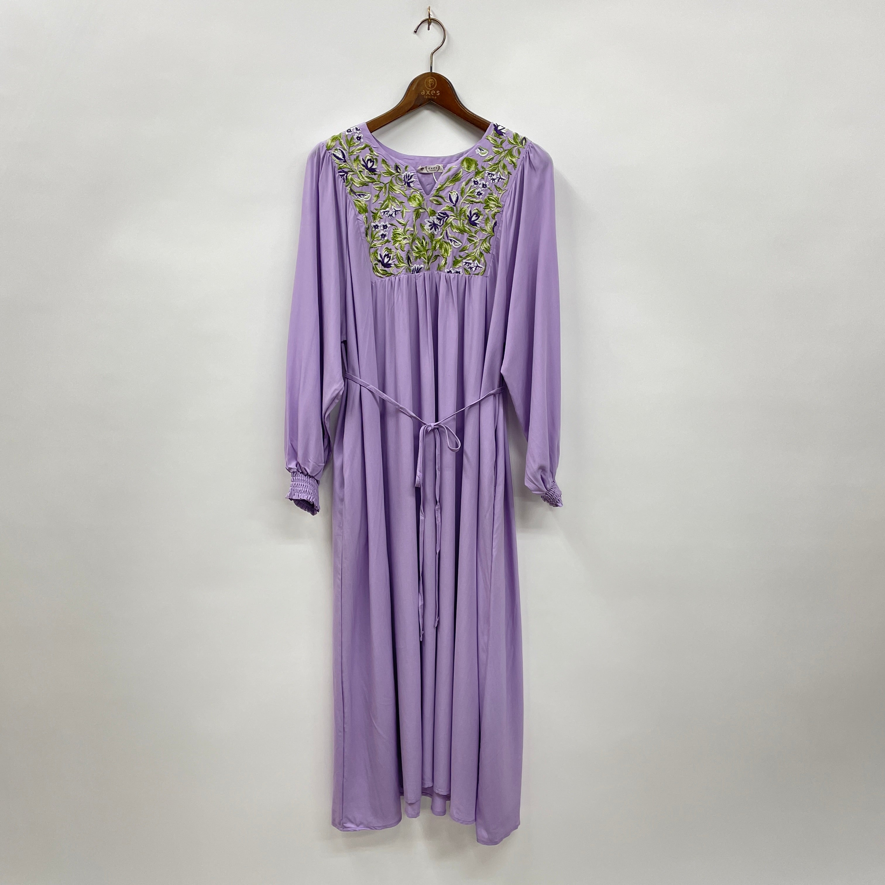 繊細な刺繍が施されたロングワンピースです。通気性の良い素材で、暑い季節も快適に過ごせる一枚。ゆったりとしたシルエットで、体型をさりげなくカバーしてくれます。