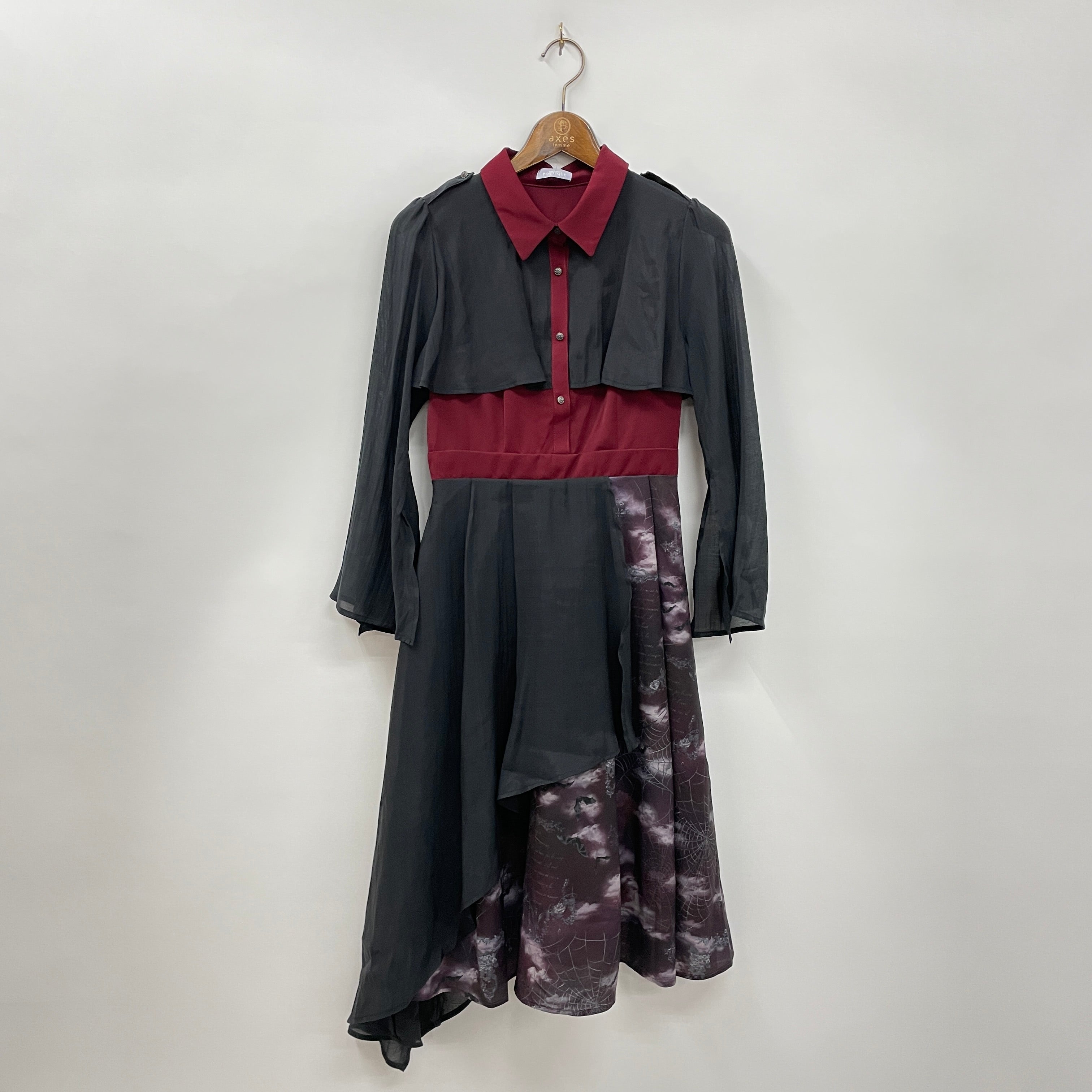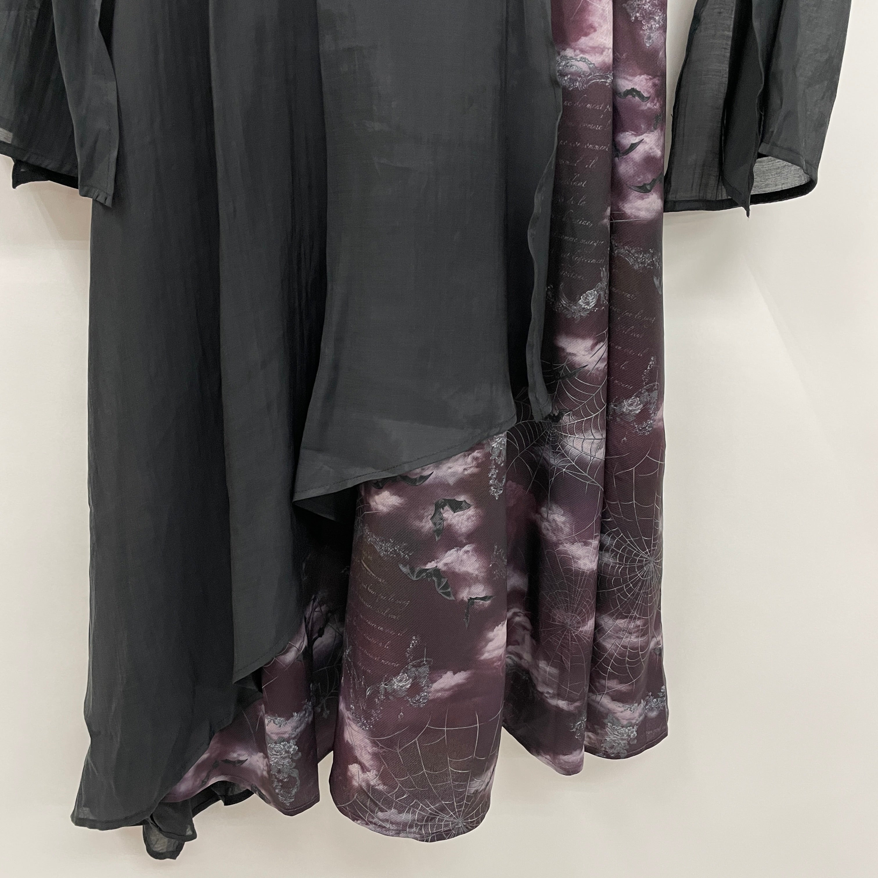 ヴァンパイアをイメージして夜空を舞うコウモリにクモの巣やバラの花をプリントに落とし込んだワンピースです。