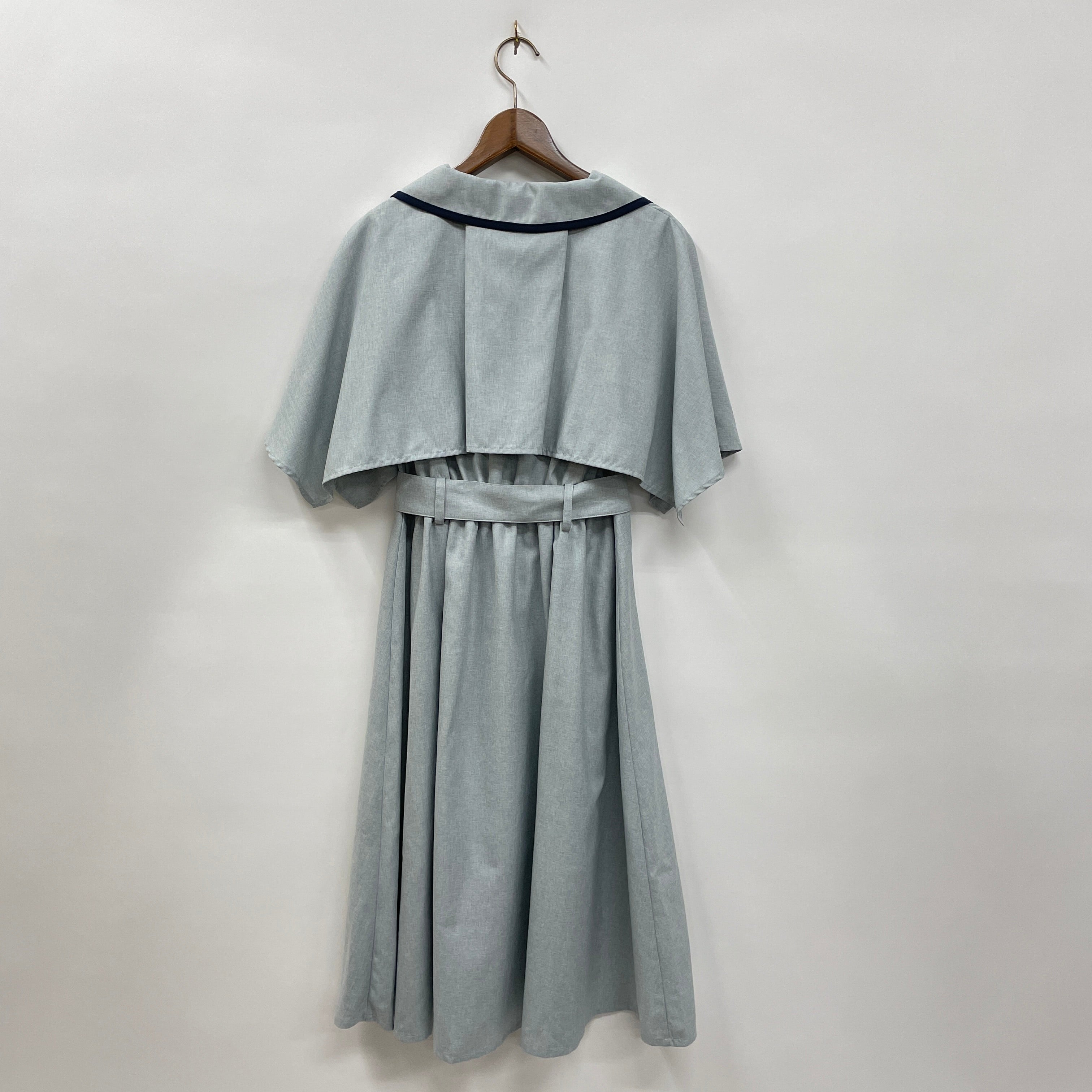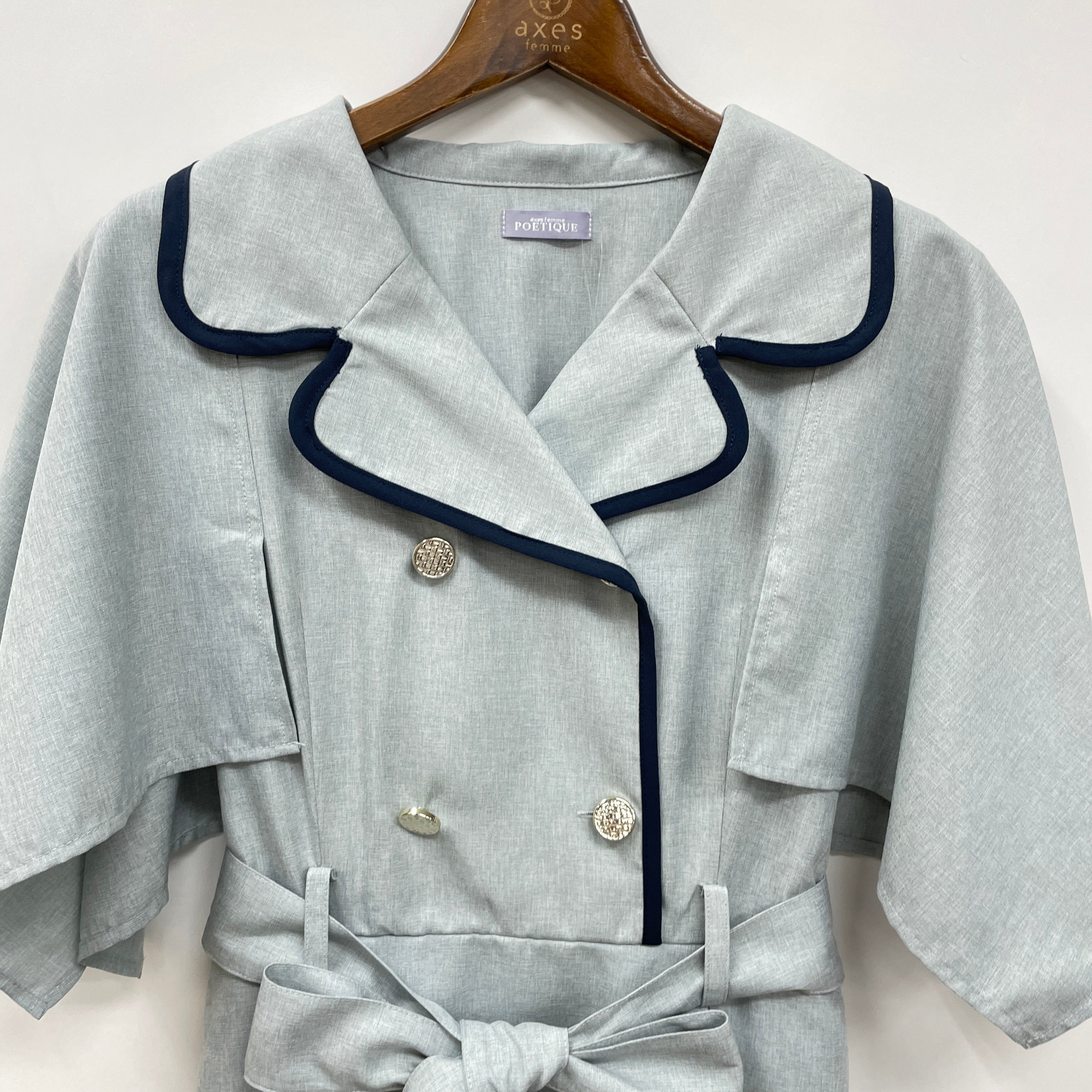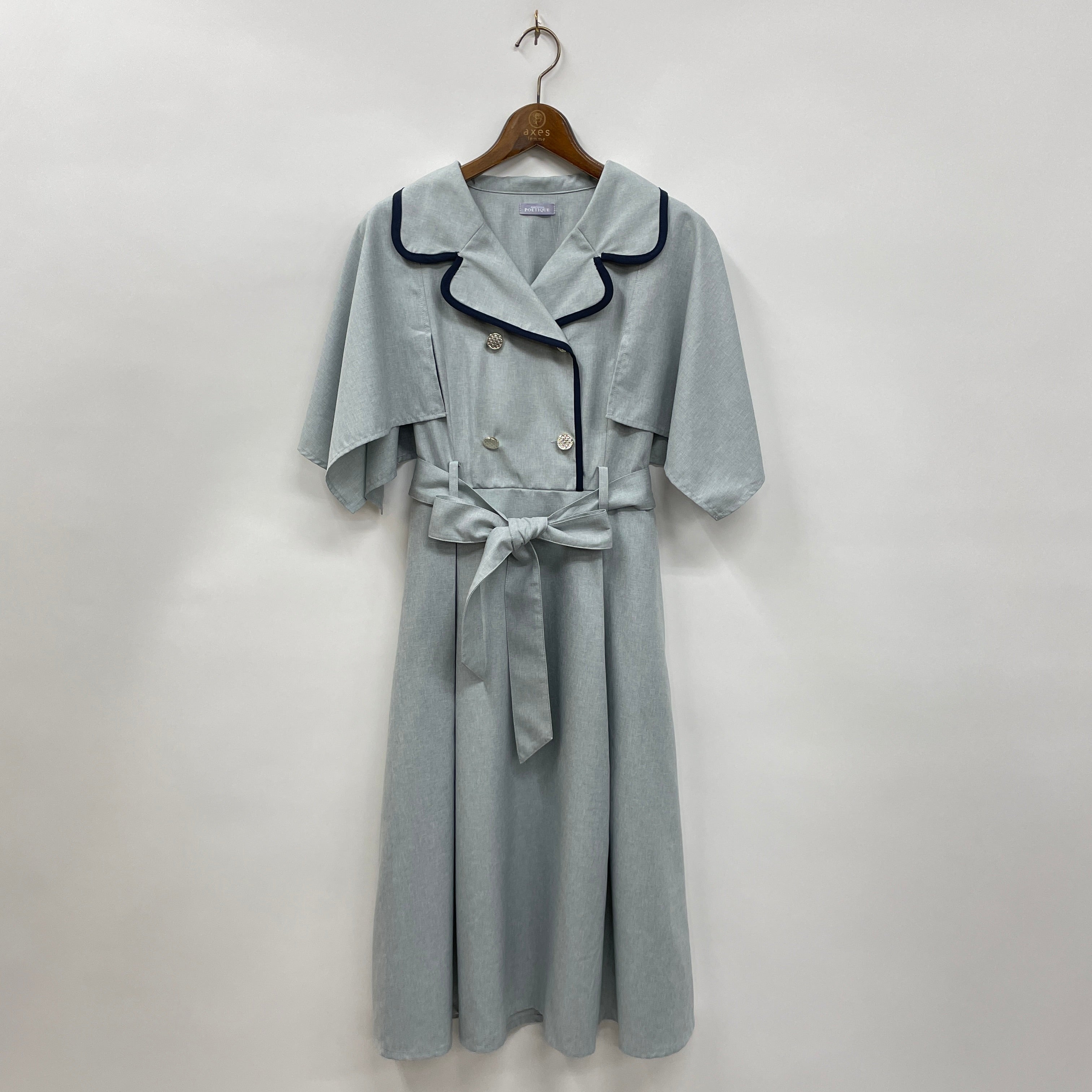 クラシックな印象のダブルボタンワンピースにひらりと揺れるイレギュラーヘムのケープでトレンド感をプラスしたアイテムです。