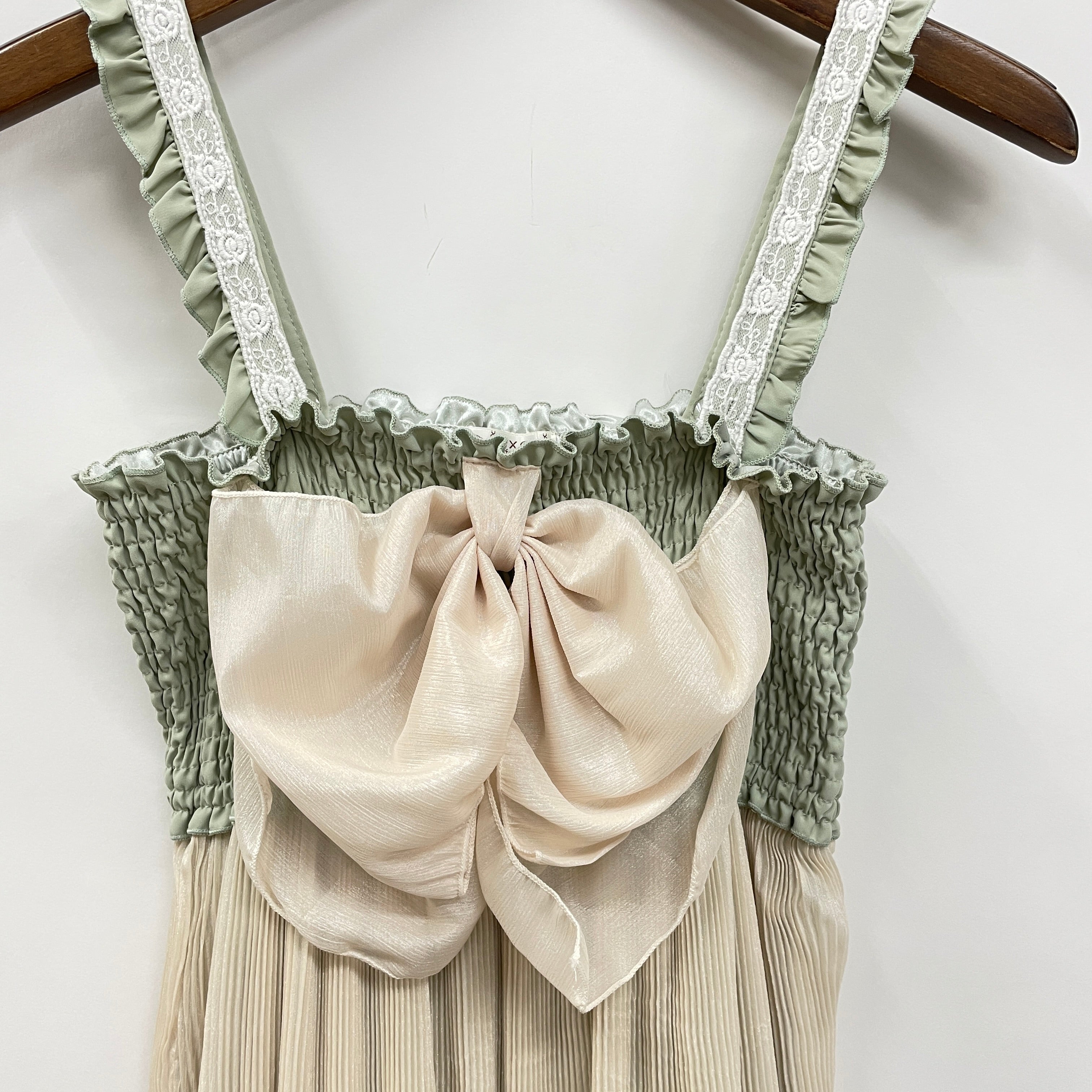 胸元の存在感あるビッグリボンがポイントのワンピース。