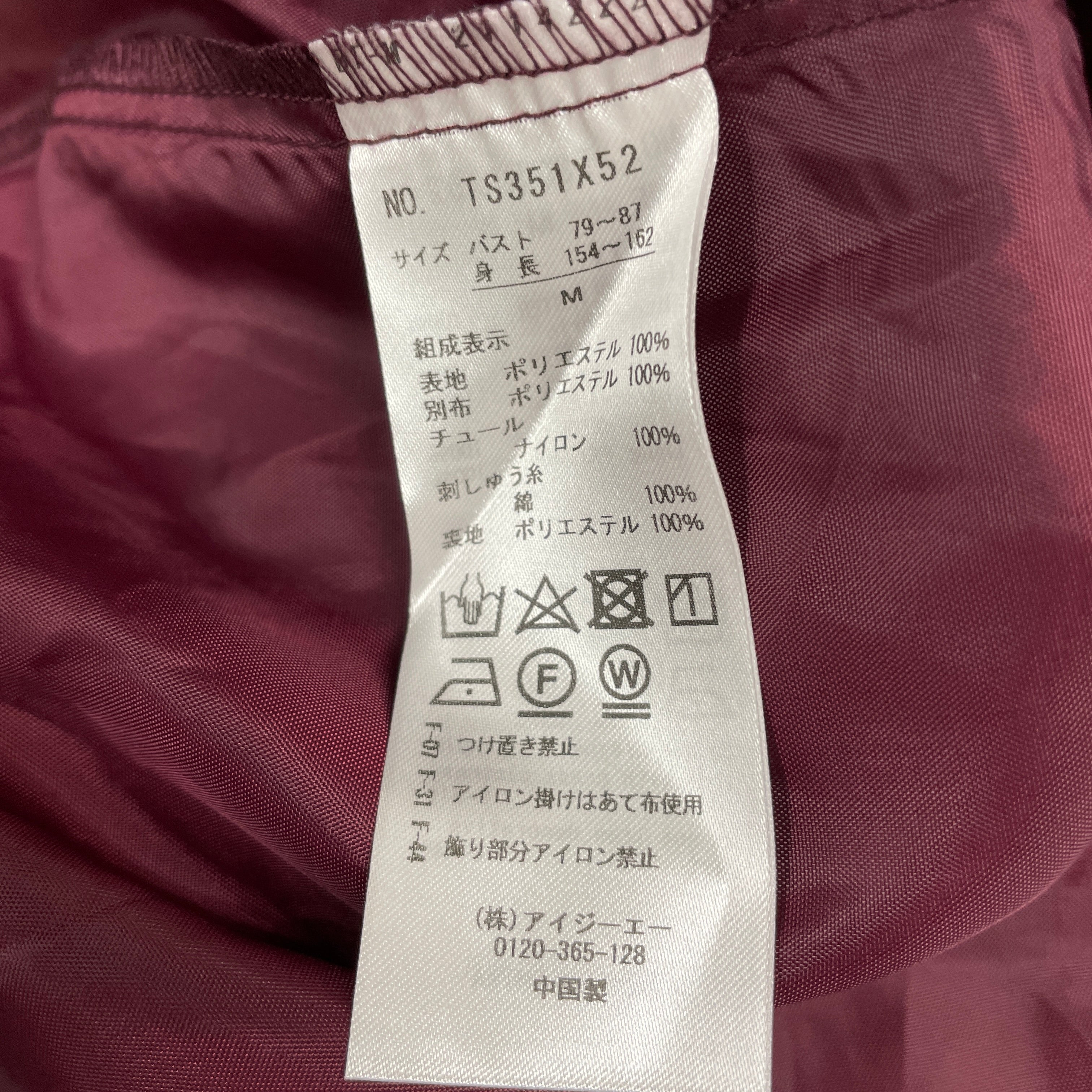 | サイズ | 着丈 | バスト | 肩幅 | ウエスト |
