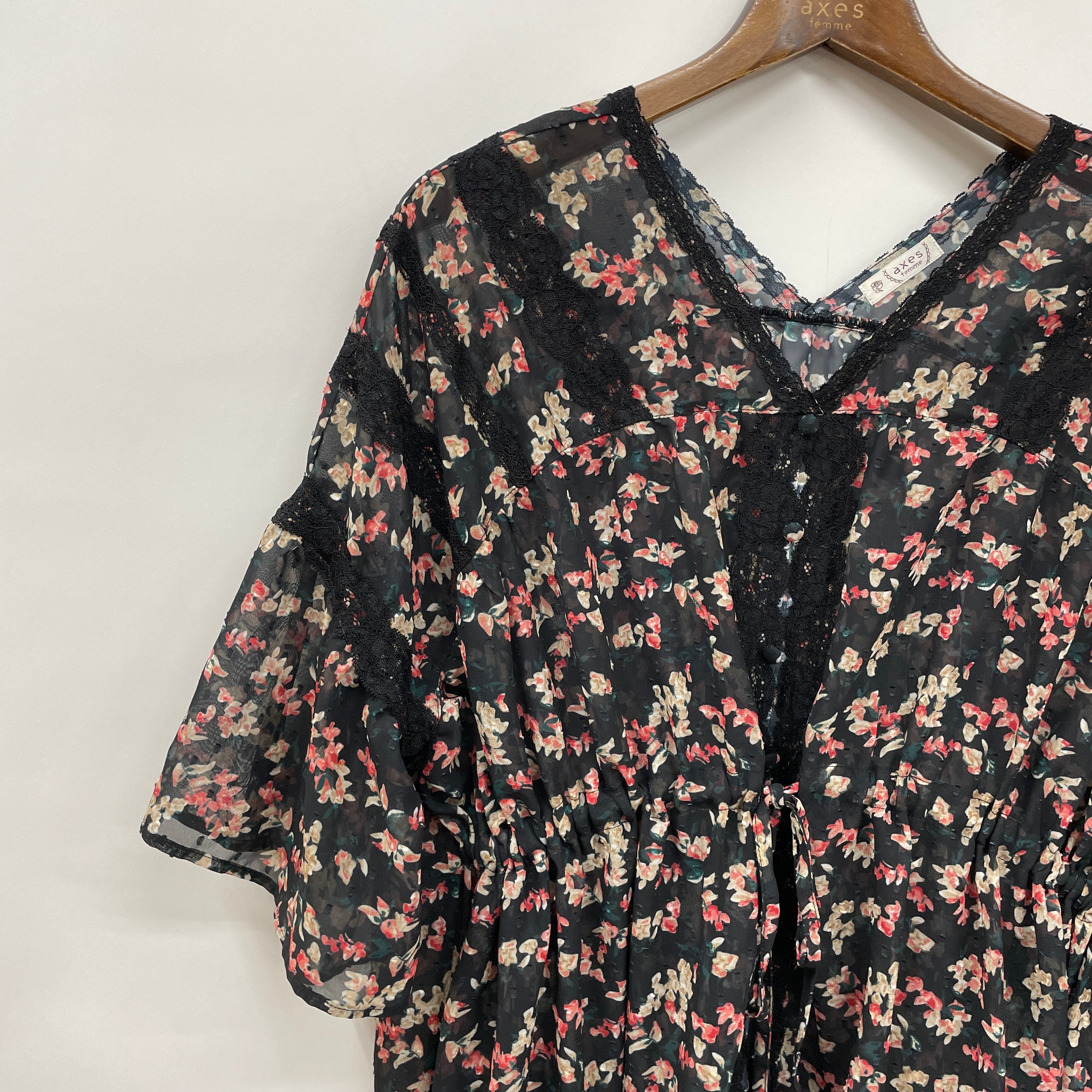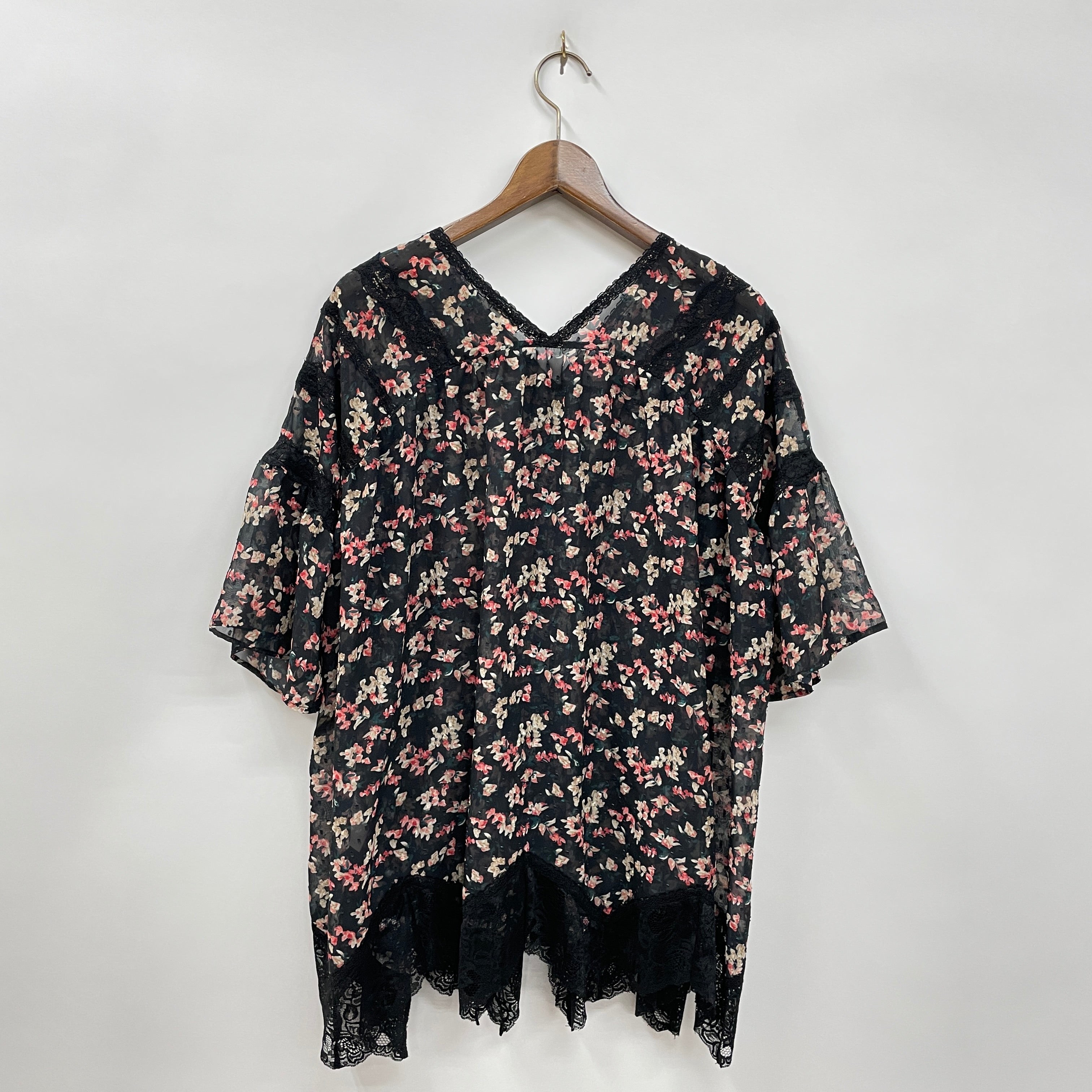 華やかなフラワープリントと繊細なレース使いがポイントのチュニックです。
