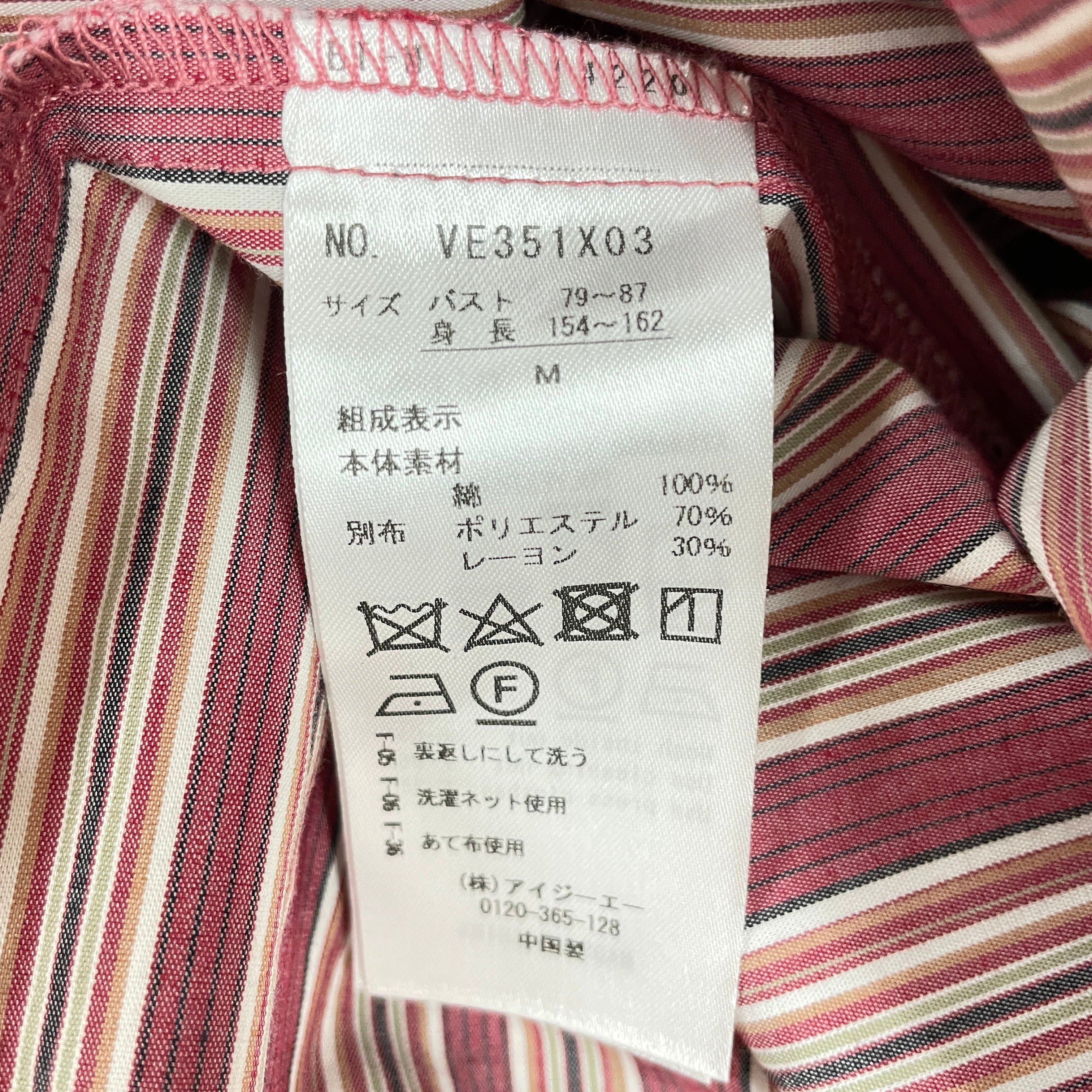 | サイズ | 着丈 | バスト | 肩幅 | ウエスト |