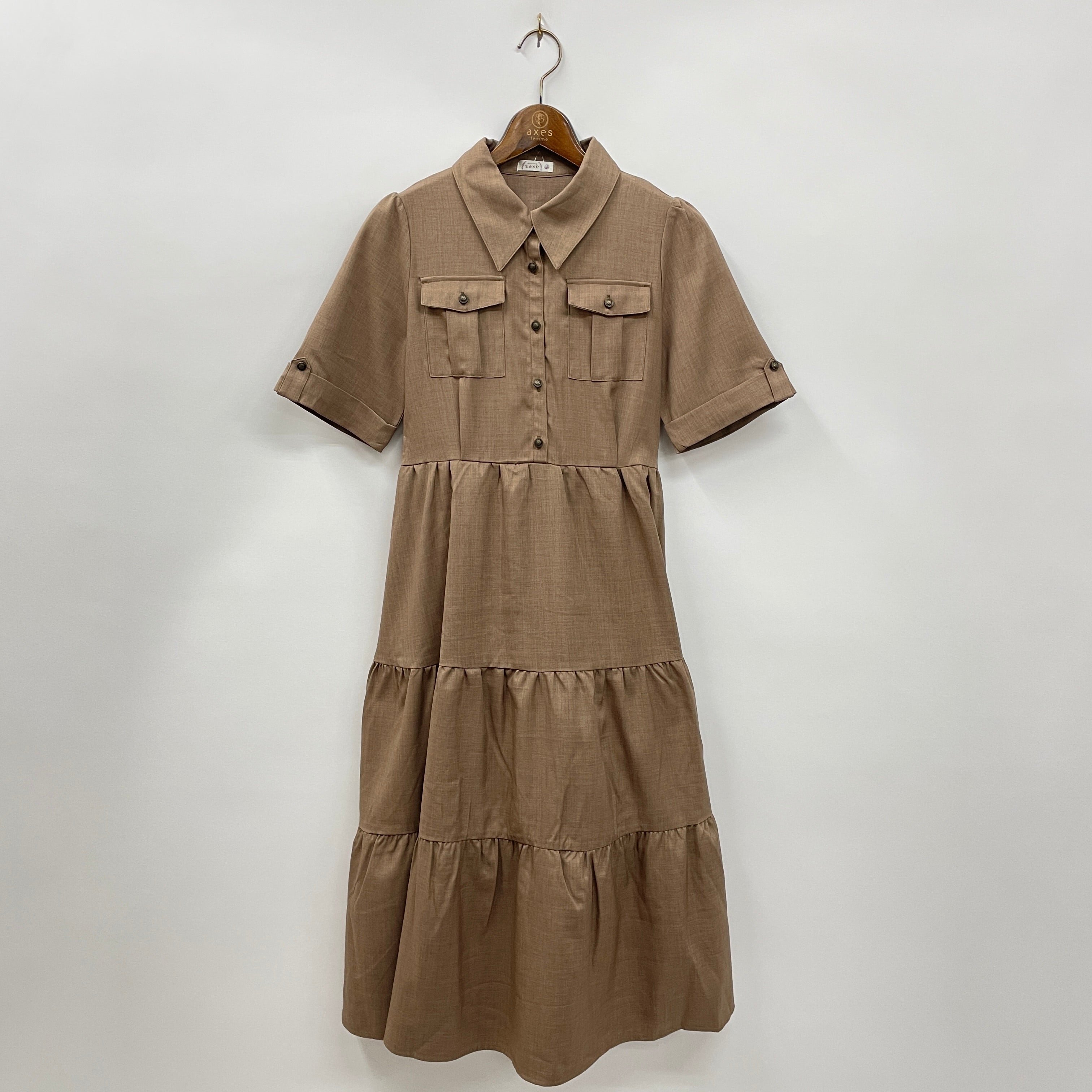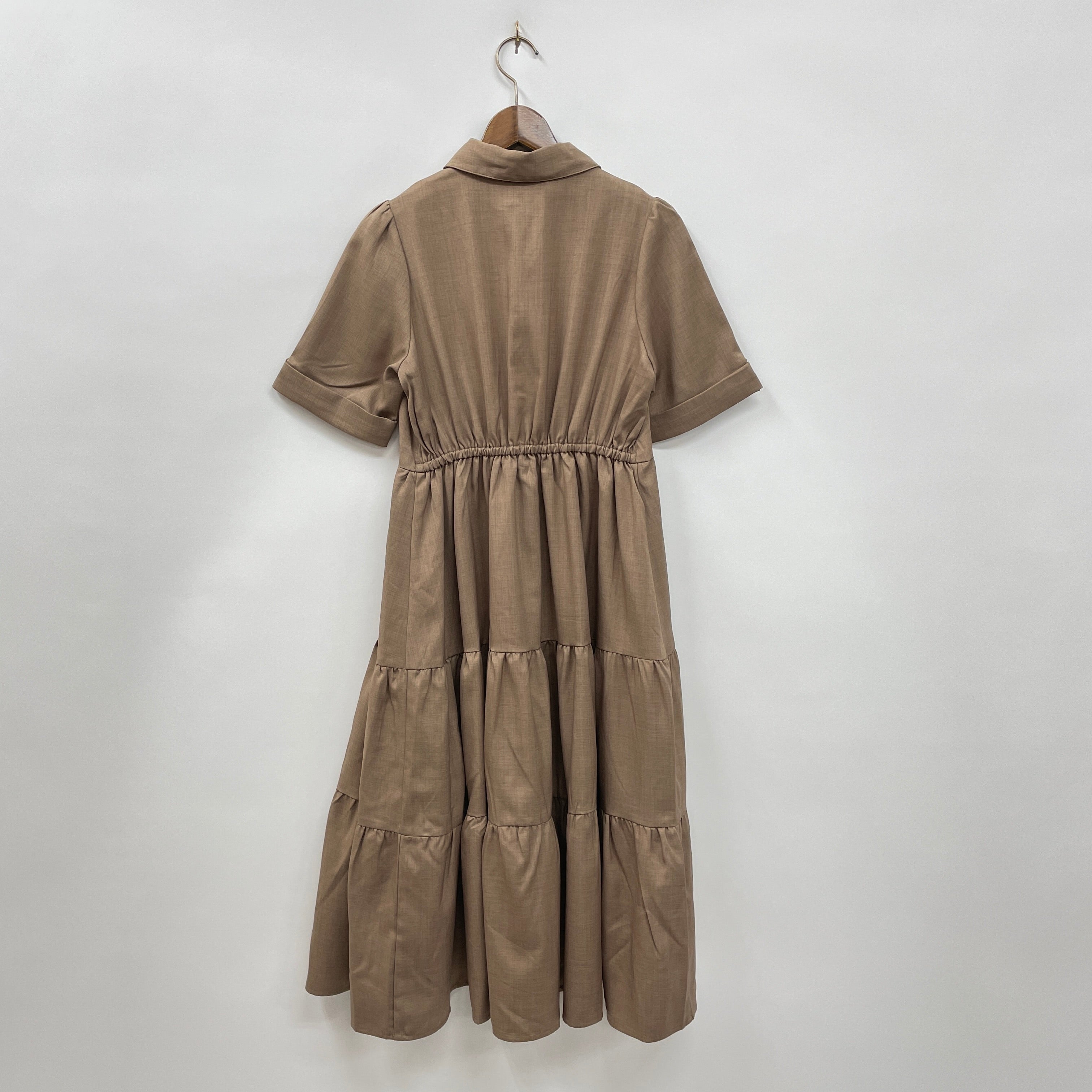裾にかけて広がったティアードデザインで、ふんわりとしたシルエットが魅力の1着です。