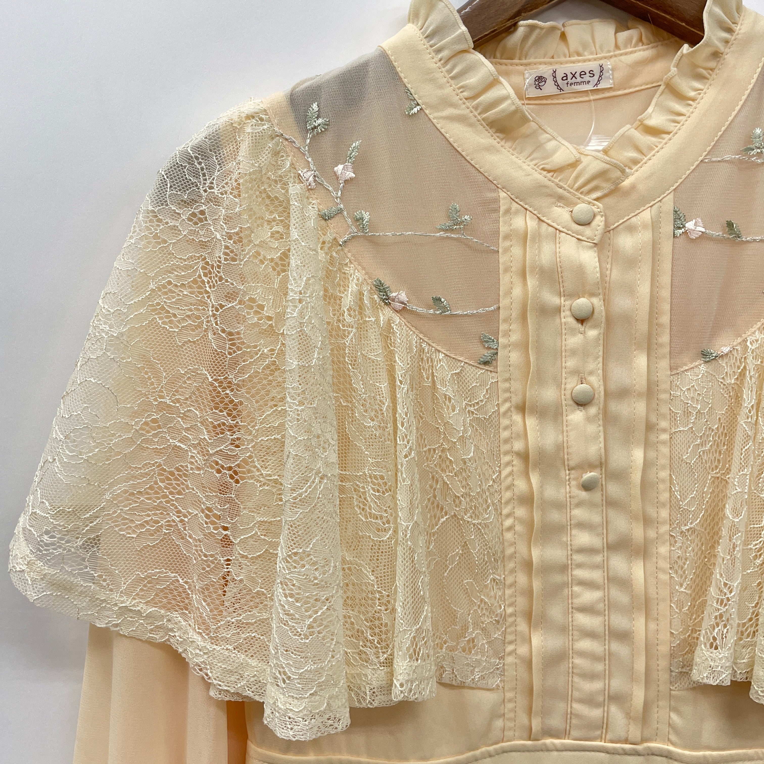 レース素材のケープや刺繍生地などエレガントなディティールを取り入れたアイテム。