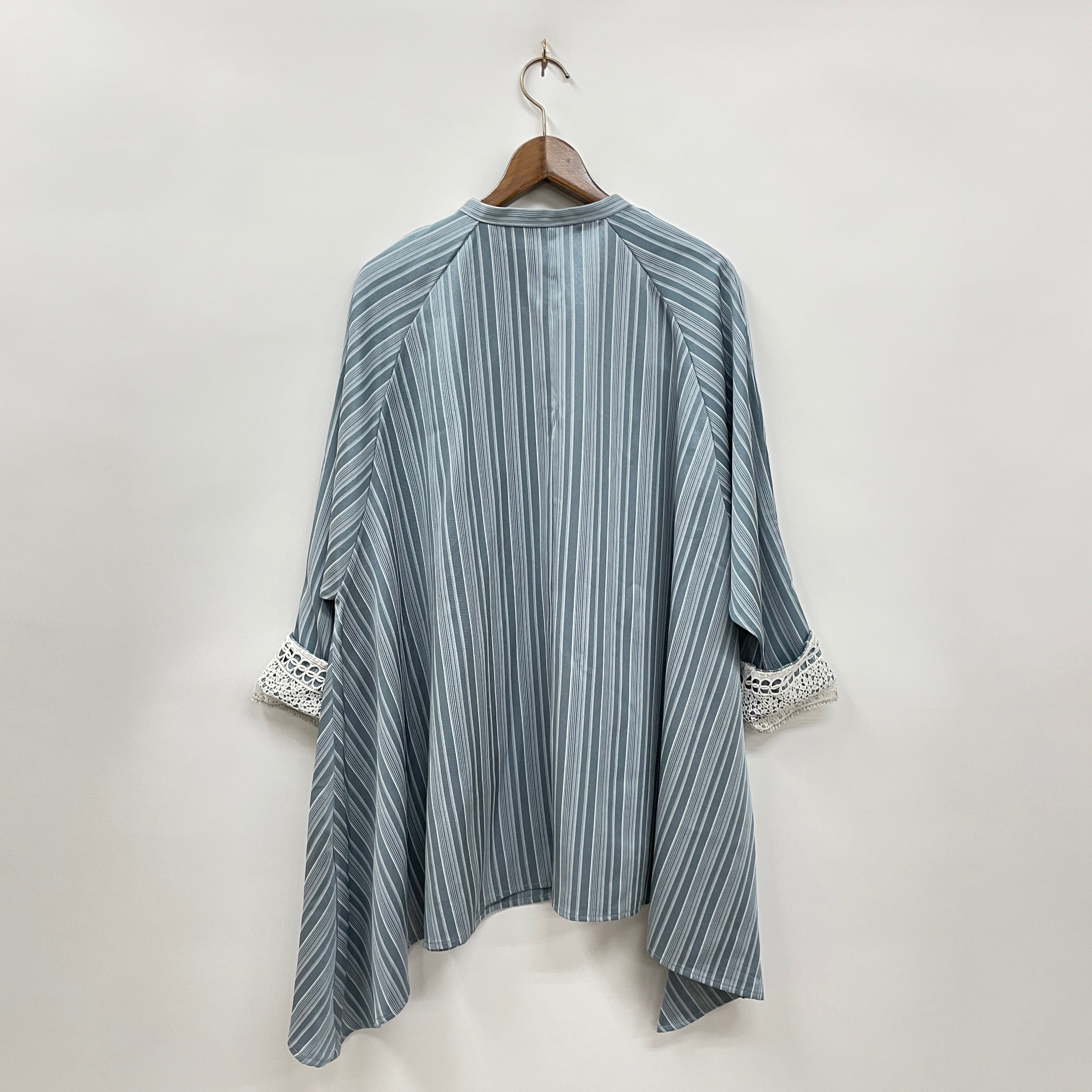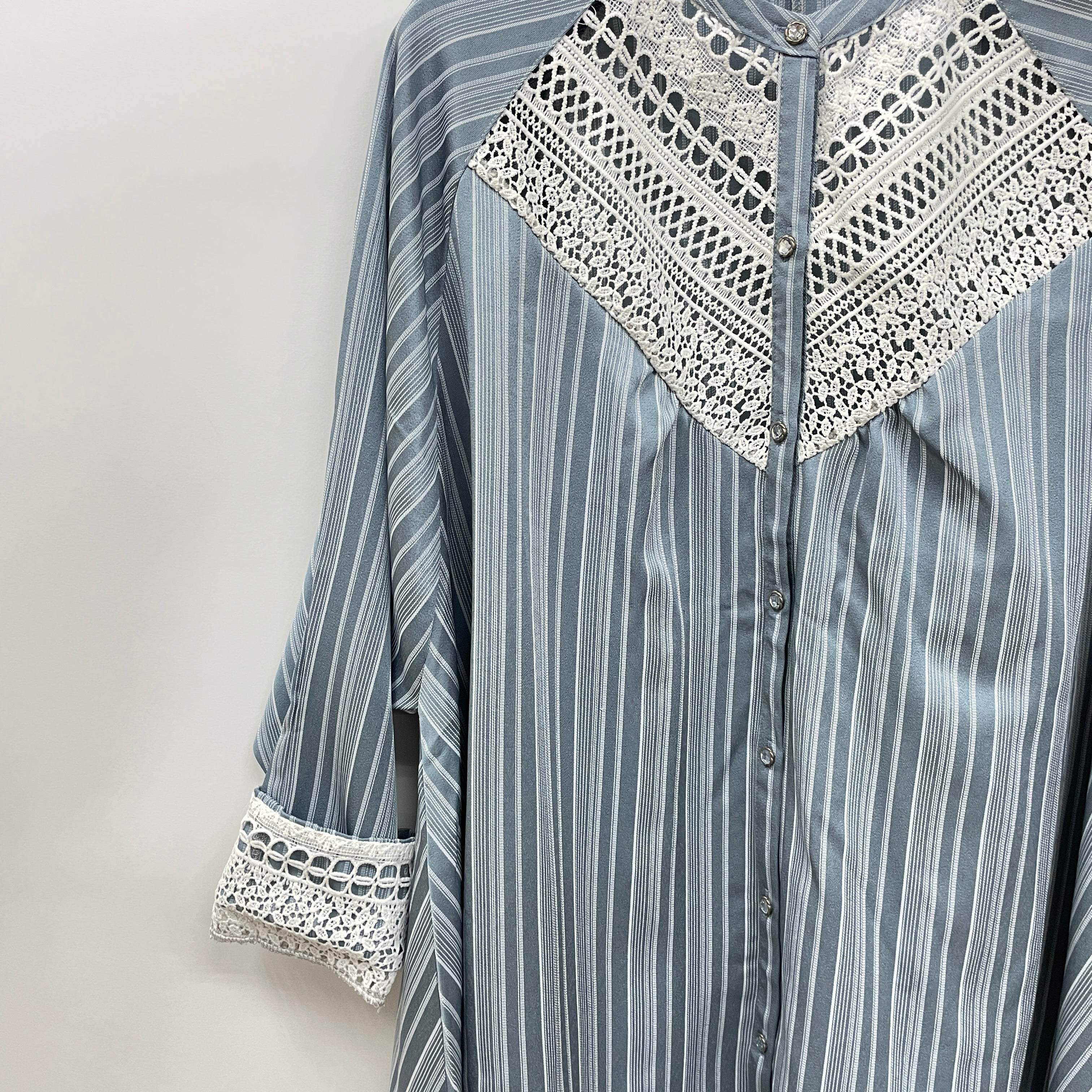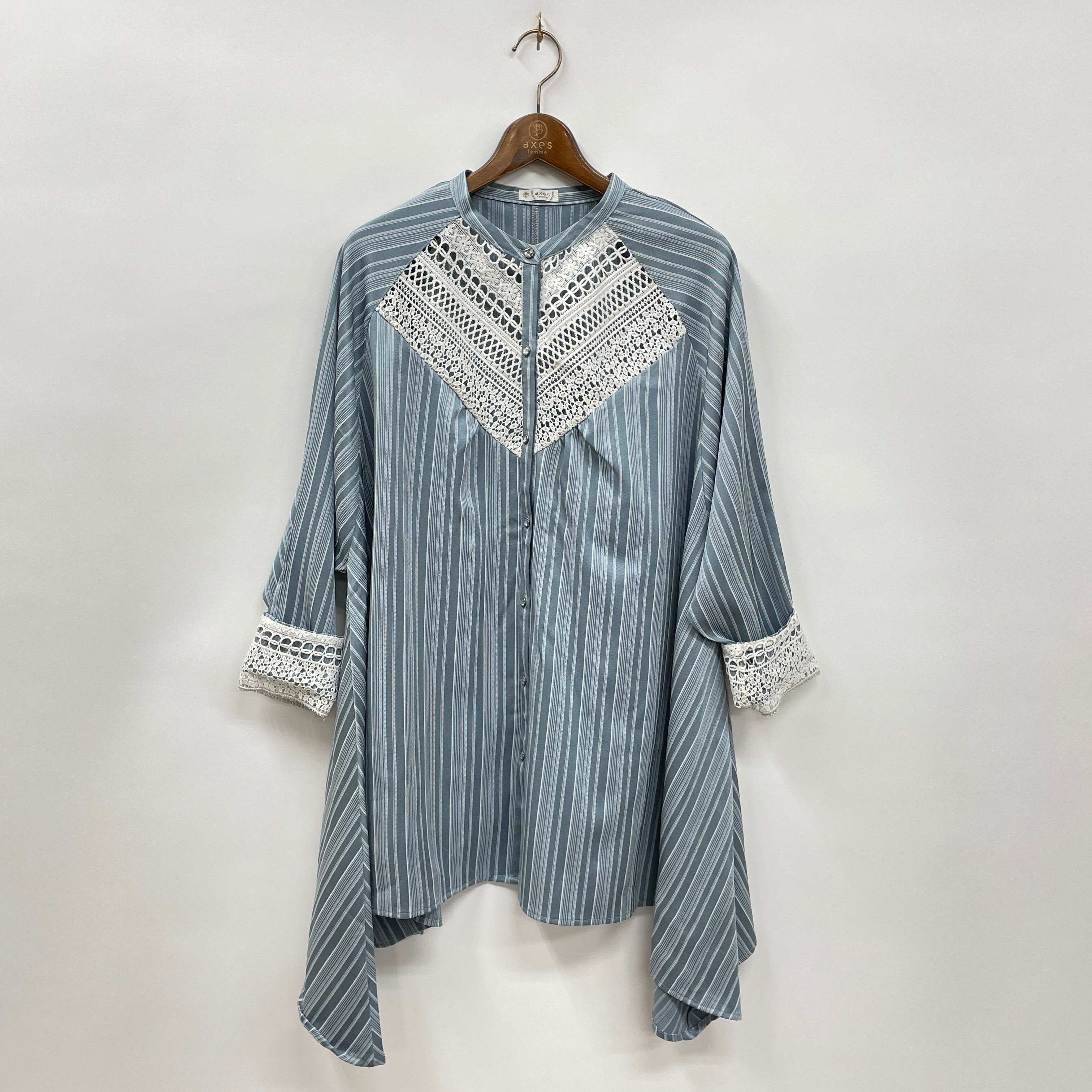 ヨークのレース切替デザインがフェミニンなシャツチュニックです。